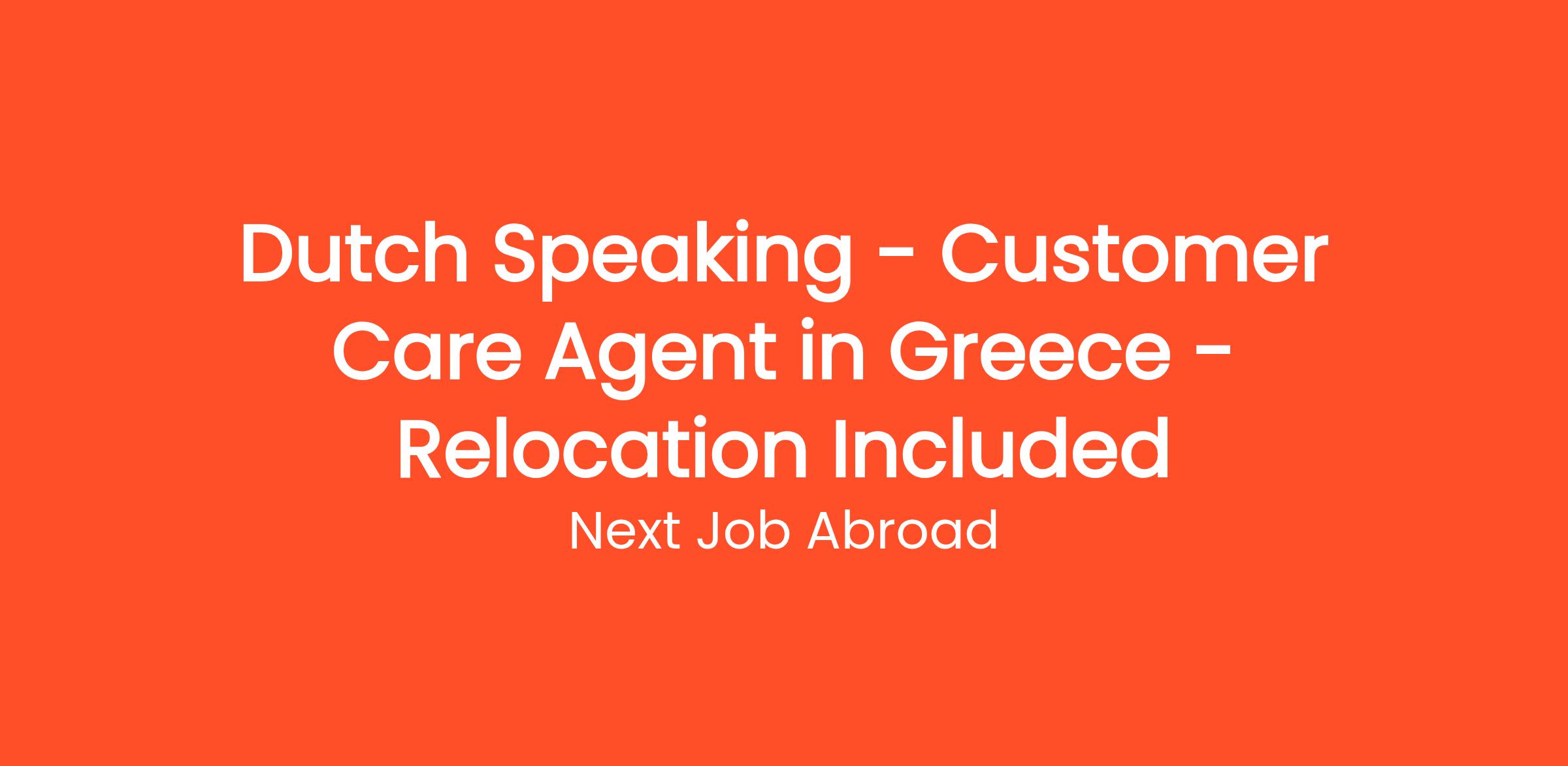 Next Job Abroad is excited to announce an opening for a Dutch Speaking Customer Care Agent in the stunning country of Greece! If you're passionate about providing exceptional customer service and looking for an adventure in a picturesque setting, this role is perfect for you. We offer comprehensive relocation support to ensure your transition to Greece is smooth and enjoyable.