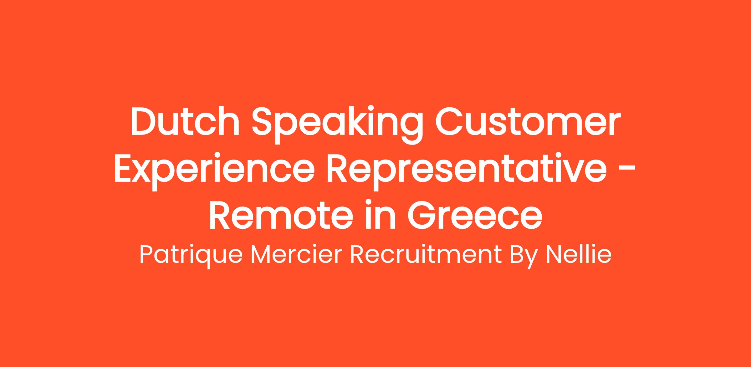 Patrique Mercier Recruitment FR is a prominent recruitment agency dedicated to connecting talented professionals with exceptional career opportunities in Greece. We are currently looking for a Dutch Speaking Customer Experience Representative to join our enthusiastic team. In this vital role, you will play a key part in delivering high-quality service to our Dutch-speaking customers, ensuring their experience with our company is both enjoyable and memorable.