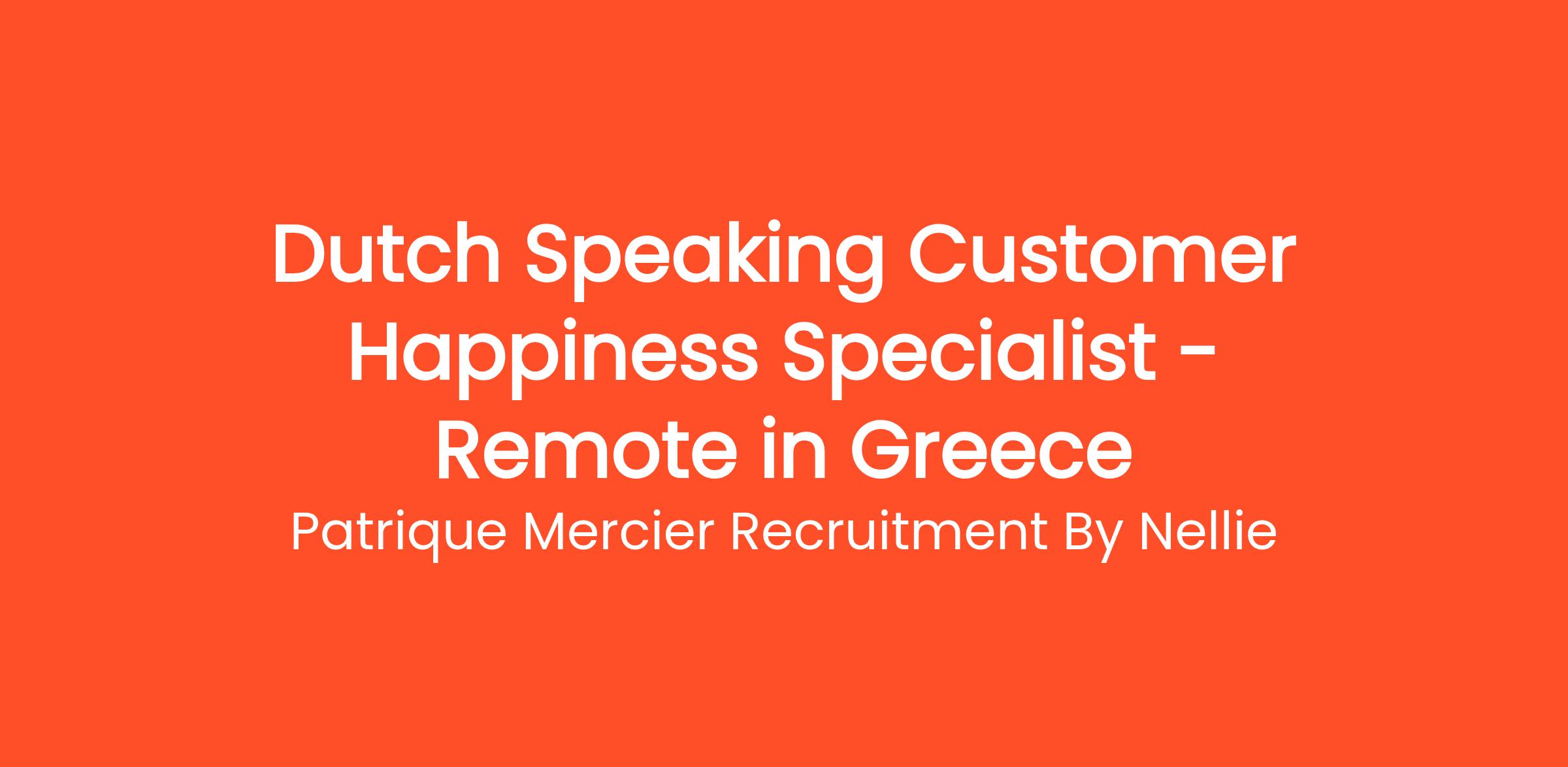 Patrique Mercier Recruitment FR is a well-respected recruitment agency focused on connecting talented individuals with exceptional job opportunities across Greece. We are excited to offer a position for a Dutch Speaking Customer Happiness Specialist. This important role is designed to ensure that our Dutch-speaking clients receive superior support and service, fostering lasting customer relationships and enhancing overall satisfaction.