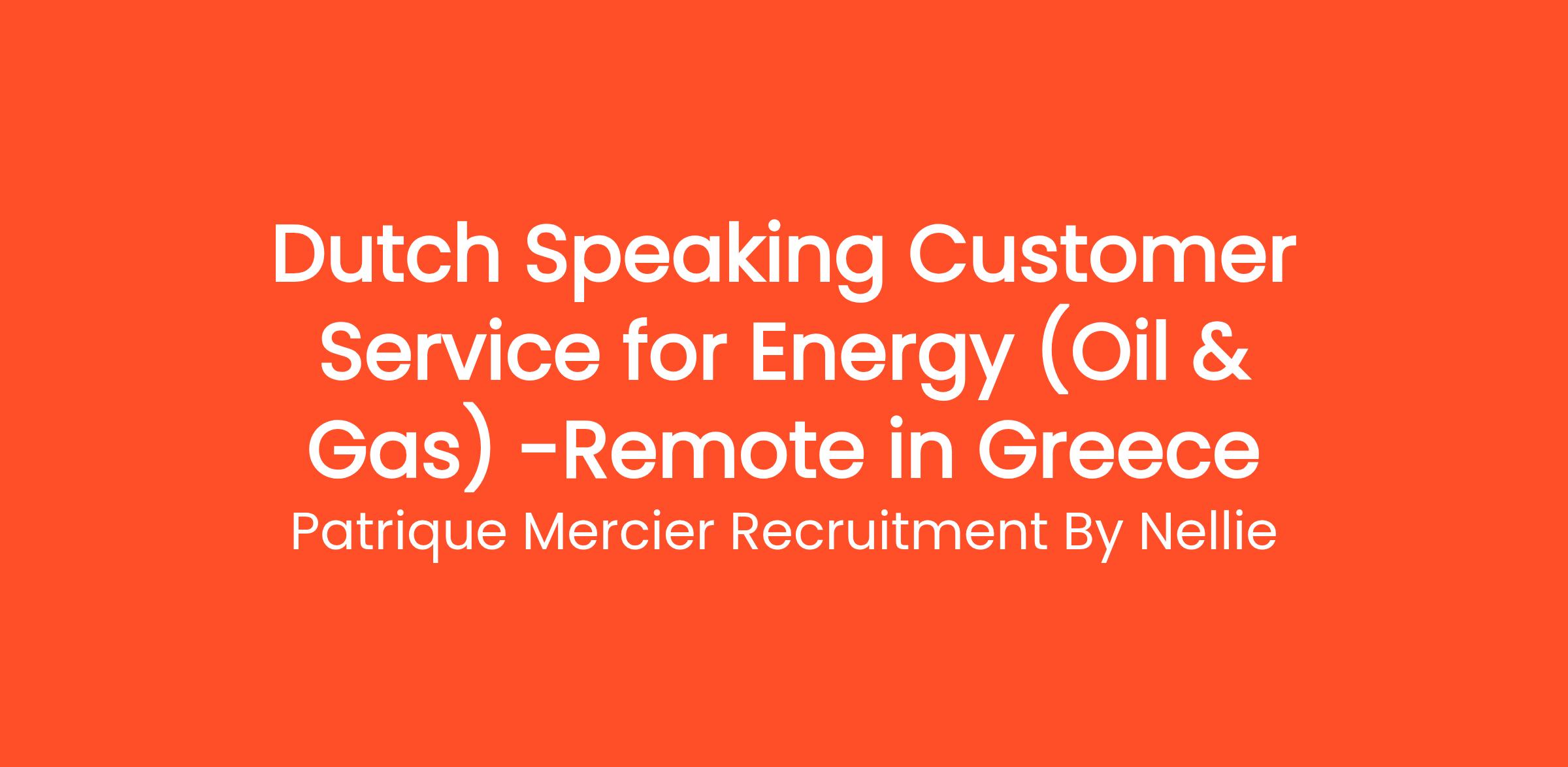 Patrique Mercier Recruitment FR is thrilled to announce an exciting opportunity for a Dutch Speaking Customer Service Representative in the Energy sector, specifically within the Oil & Gas industry. This role is based in Athens, Greece, and is ideal for individuals who are eager to contribute to a dynamic sector while delivering excellent service to clients.