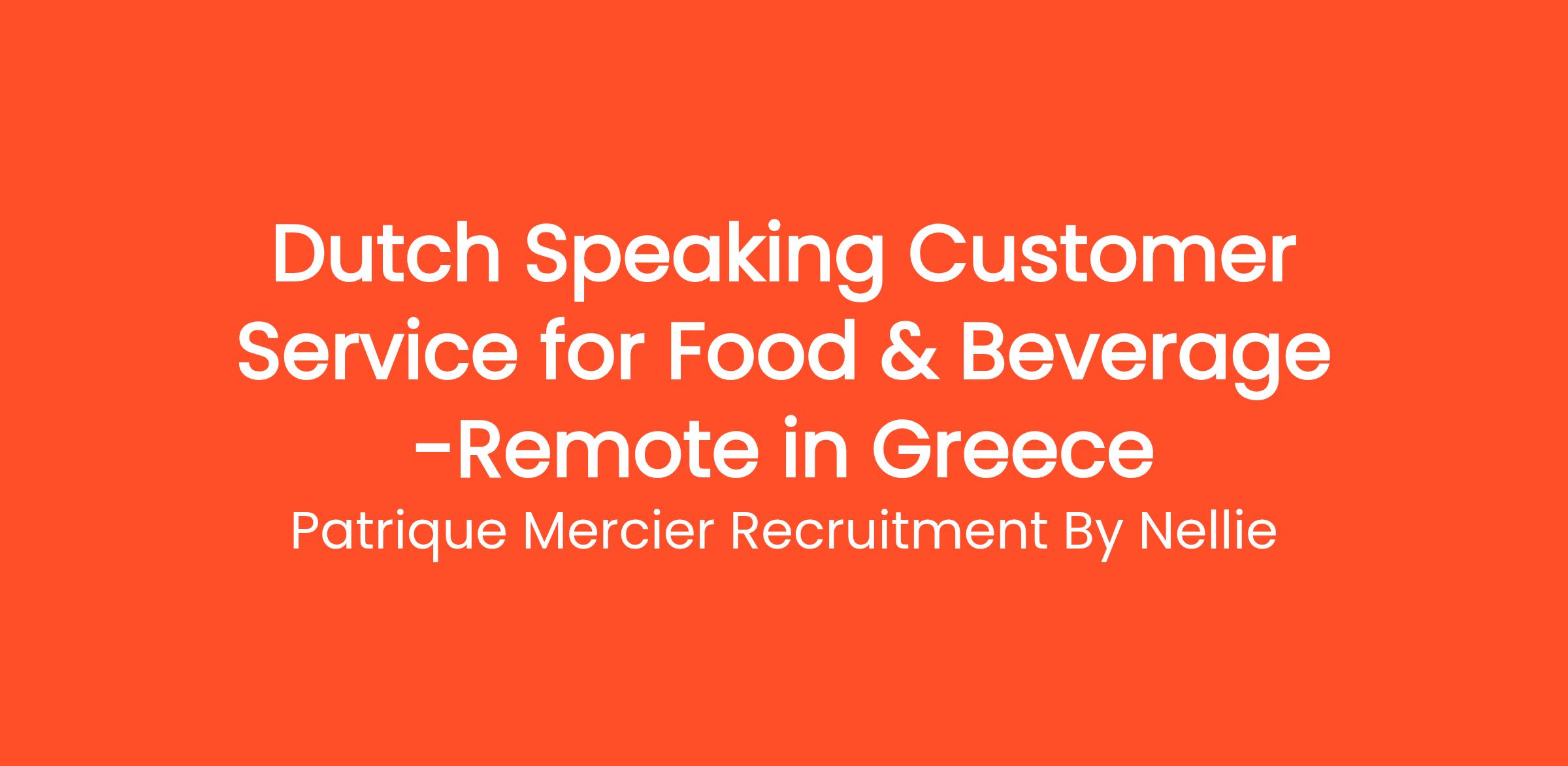 Patrique Mercier Recruitment FR is thrilled to announce an exciting opportunity for a Dutch Speaking Customer Service Representative within the Food & Beverage industry. This position, based in Athens, Greece, is perfect for individuals who are passionate about customer service and the vibrant food and beverage sector.