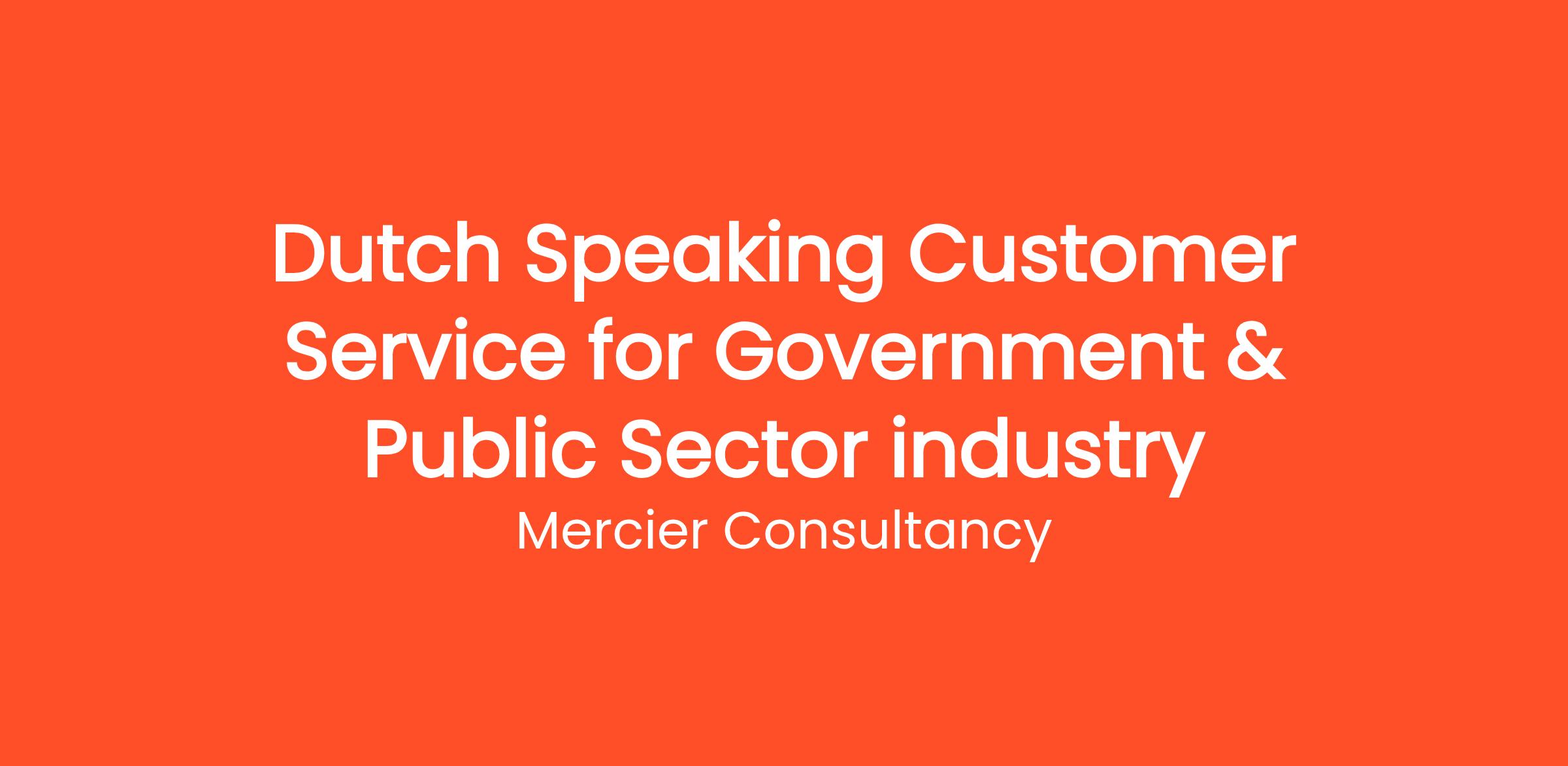 Mercier Consultancy is seeking a dedicated Dutch Speaking Customer Service Representative to join our team specializing in the Government & Public Sector industry. In this critical role, you will provide essential support to our Dutch-speaking clients, assisting them with inquiries related to public services and government programs.