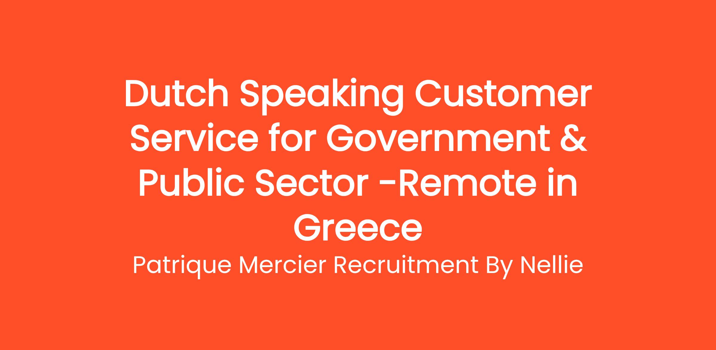 Patrique Mercier Recruitment FR is delighted to announce an opening for a Dutch Speaking Customer Service Representative within the Government and Public Sector industry. This role is designed for individuals who are dedicated to delivering exceptional customer support and are interested in contributing to public service initiatives.