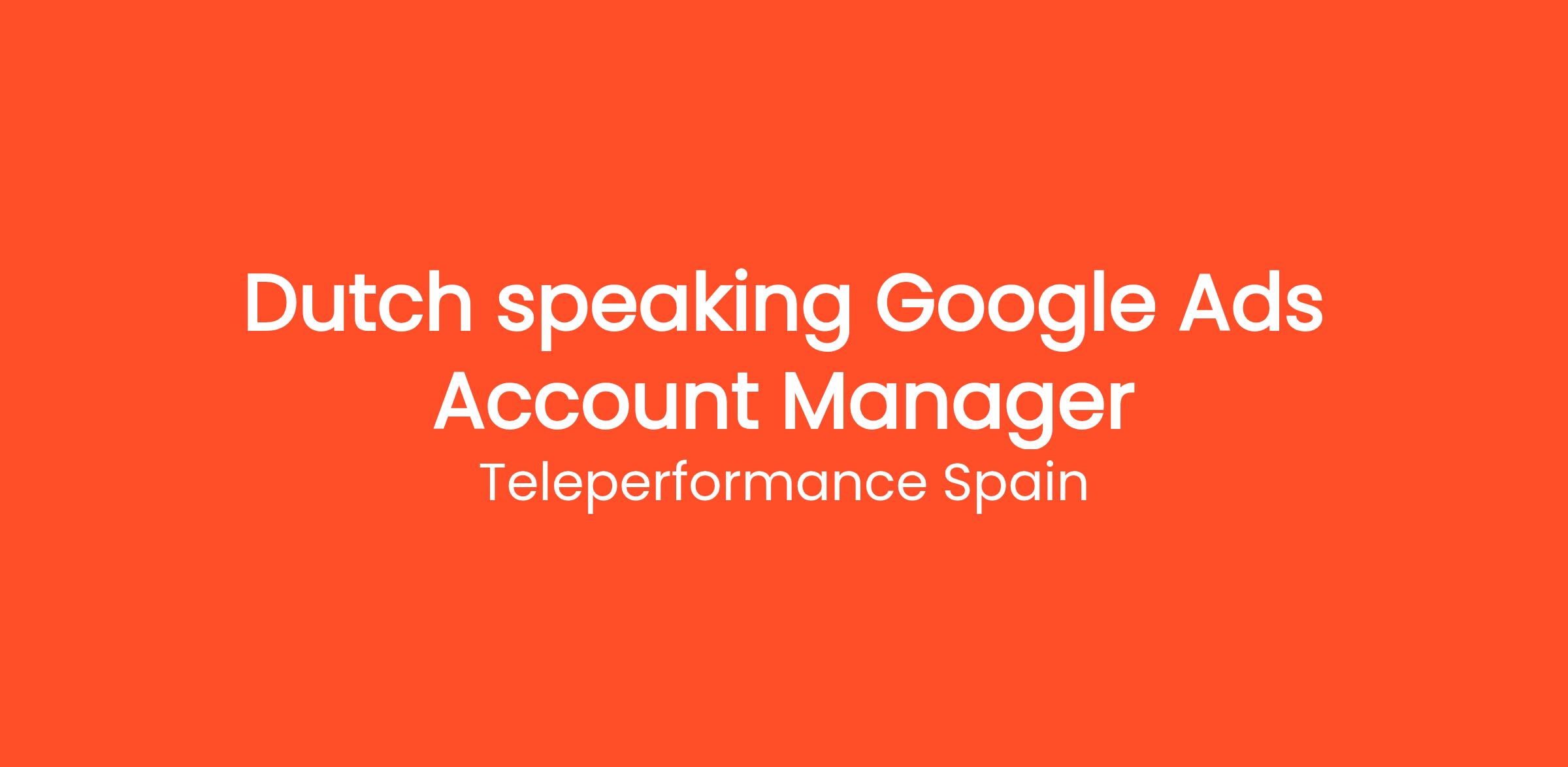 As a Google Ads Account Manager you will partner with Dutch companies and agency partners to provide customized digital advertising strategies. Working in a goal-oriented environment, you’ll help expand the Client’s customer base across EMEA while shaping exceptional experiences and empowering innovation in the Spanish online marketing landscape.