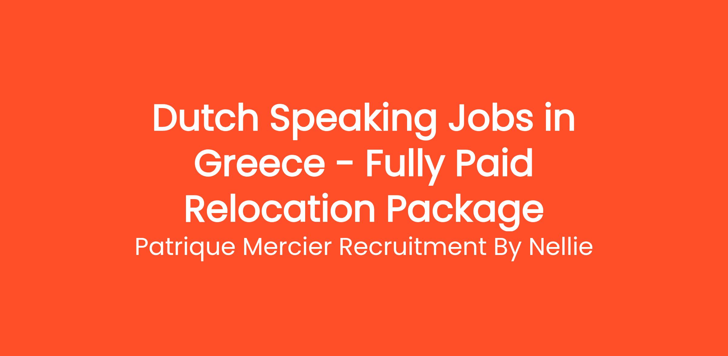 Patrique Mercier Recruitment FR is excited to present an incredible opportunity for Dutch-speaking individuals looking to embark on a new adventure in Greece. We are offering a range of job positions with a fully paid relocation package to help you transition smoothly to this beautiful country. Join a vibrant team and enjoy an enriching professional experience while exploring everything Greece has to offer!