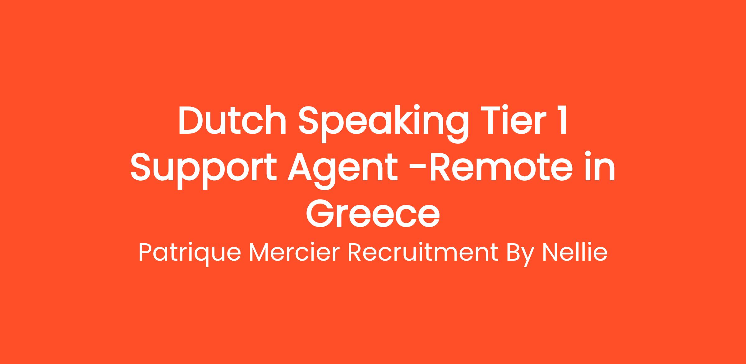 Patrique Mercier Recruitment FR is pleased to announce an opening for a Dutch Speaking Tier 1 Support Agent. This role is designed for individuals who have a passion for customer service and want to support our Dutch-speaking clients. As a Tier 1 Support Agent, you will serve as the first point of contact, assisting with inquiries and resolving issues efficiently.