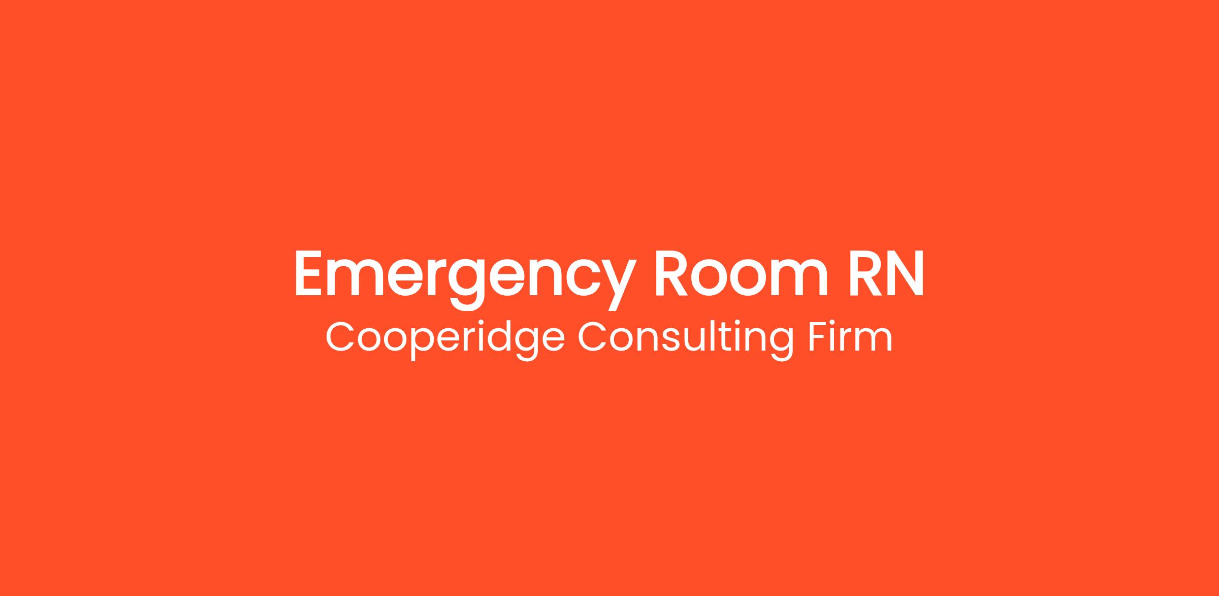 Cooperidge Consulting Firm is seeking an Emergency Room Registered Nurse (RN) for a top Healthcare client.
