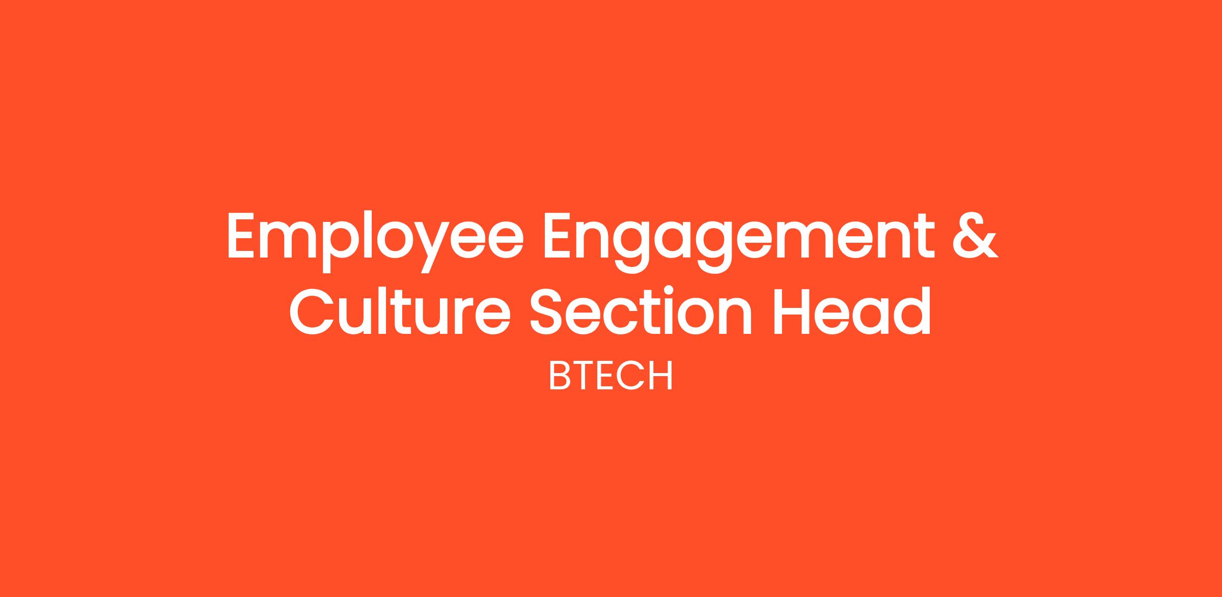 The Engagement & Culture Section Head is responsible for shaping and driving organizational culture, employee engagement, and values integration. This role ensures that employee voice is heard and acted upon, fosters a culture aligned to company values, and designs impactful employee experiences that enhance retention and performance.