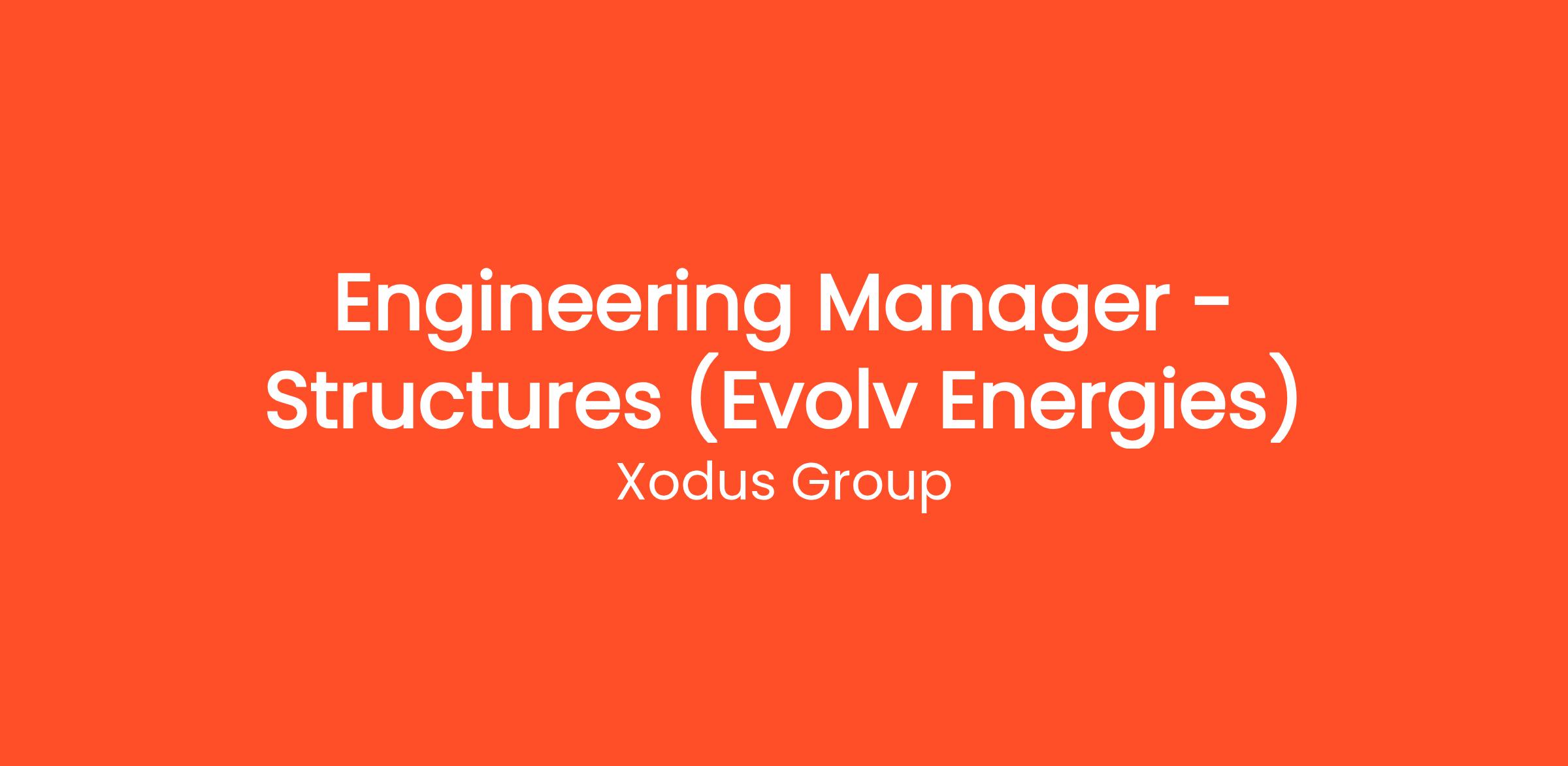 Role: The Engineering Manager – Structures will be accountable for the delivery of Structural engineering deliverables to our projects. You will be expected to provide technical expertise into our ongoing projects, bids and proposals and to represent Evolv Energies at client and stakeholder meetings as required.