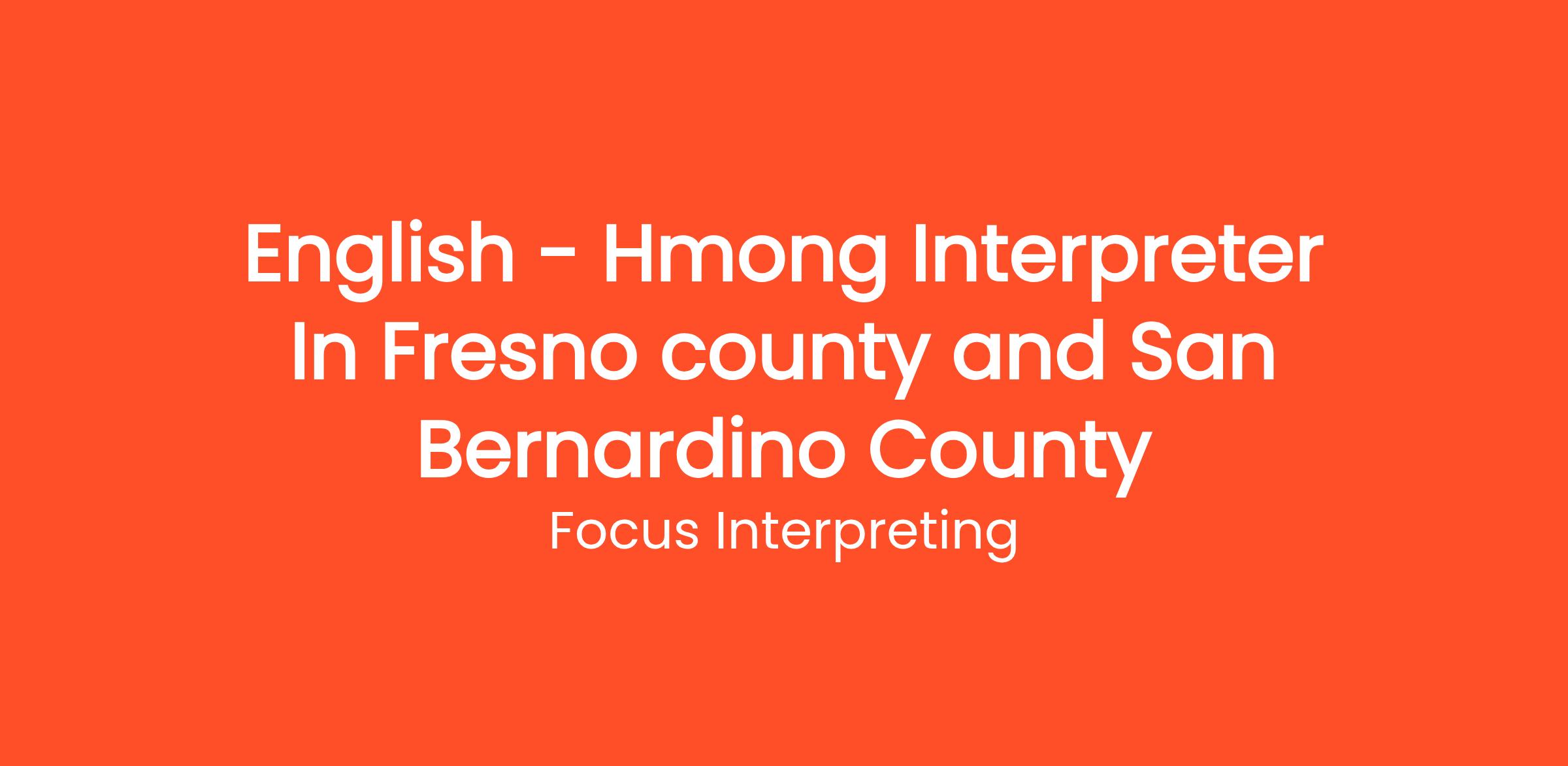 Focus Interpreting is looking for a skilled English - Hmong Interpreters to join our teams serving Fresno County and/or San Bernardino County. In this role, you will be responsible for providing high-quality interpretation services that facilitate effective communication between English-speaking individuals and Hmong-speaking clients in various settings, including healthcare, legal, and social services.