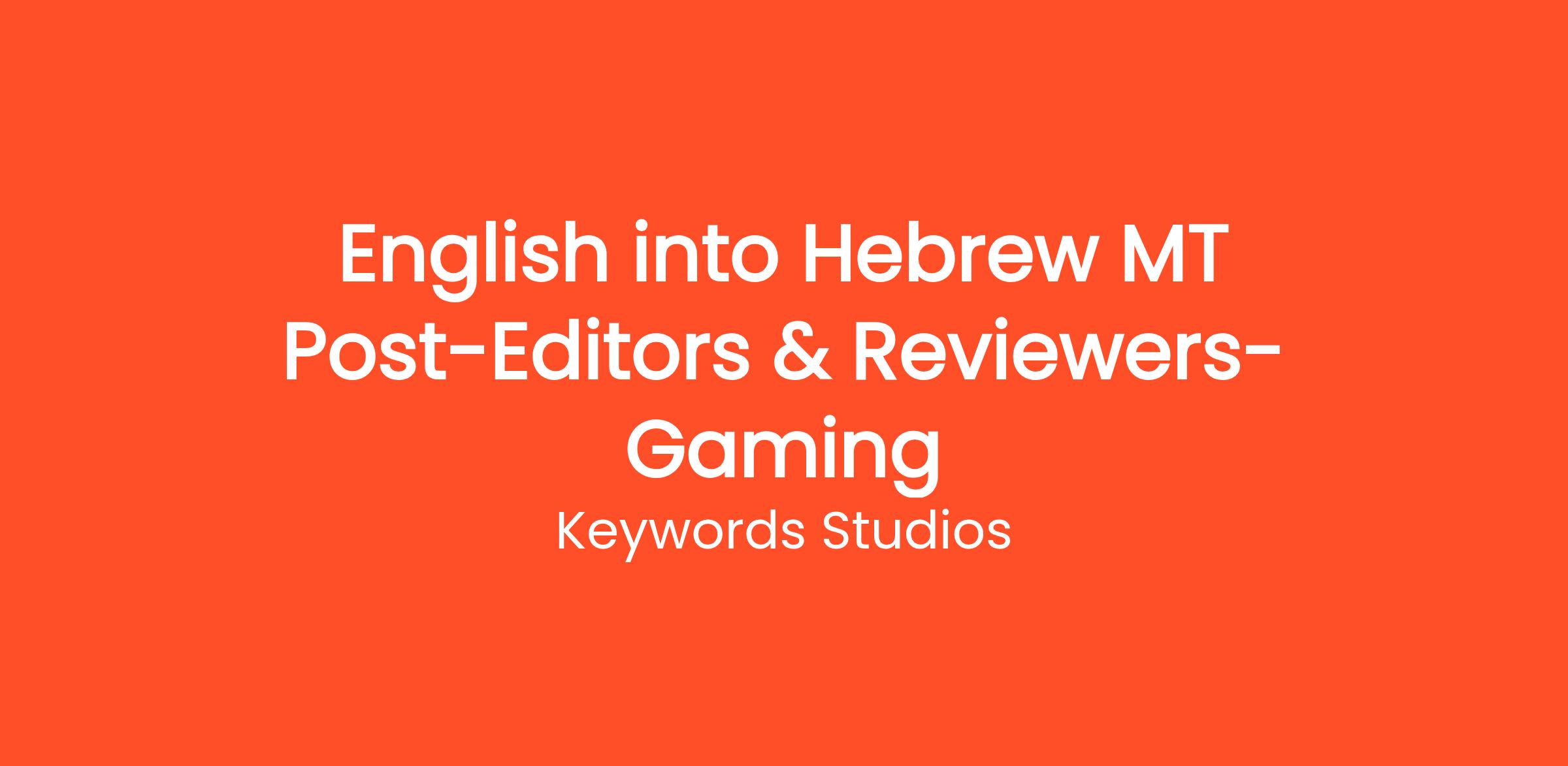 We are recruiting freelance gaming translators/mtpe editors and reviewers for multiple AAA games projects from English into Hebrew.