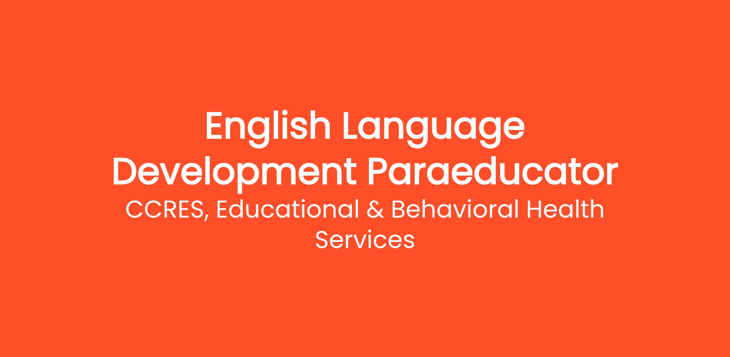 The English Language Development (ELD) Paraeducator enhances the ELD program by supporting and working with students and school staff to perform all duties with accuracy, confidentiality, and professionalism. The ELD Paraeducator will coordinate with the ELD supervisor and content area teachers in the delivery of English language and content instruction. This position supports ELL students in the acculturation process and assists with translation and interpretation materials. *Bilingual English/Spanish - preferred