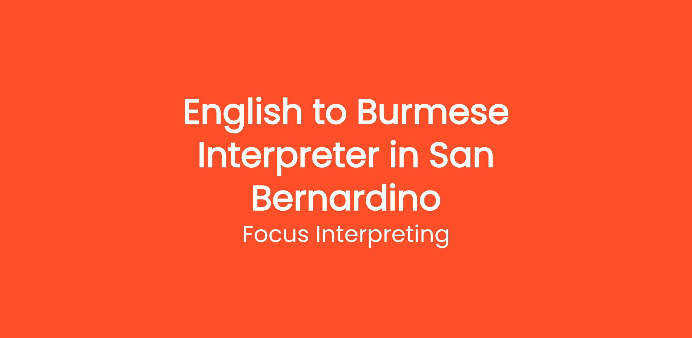 Focus Interpreting is seeking a skilled English to Burmese Interpreter to join our team in San Bernardino. In this role, you will be responsible for facilitating clear and accurate communication between English and Burmese speakers in various settings.