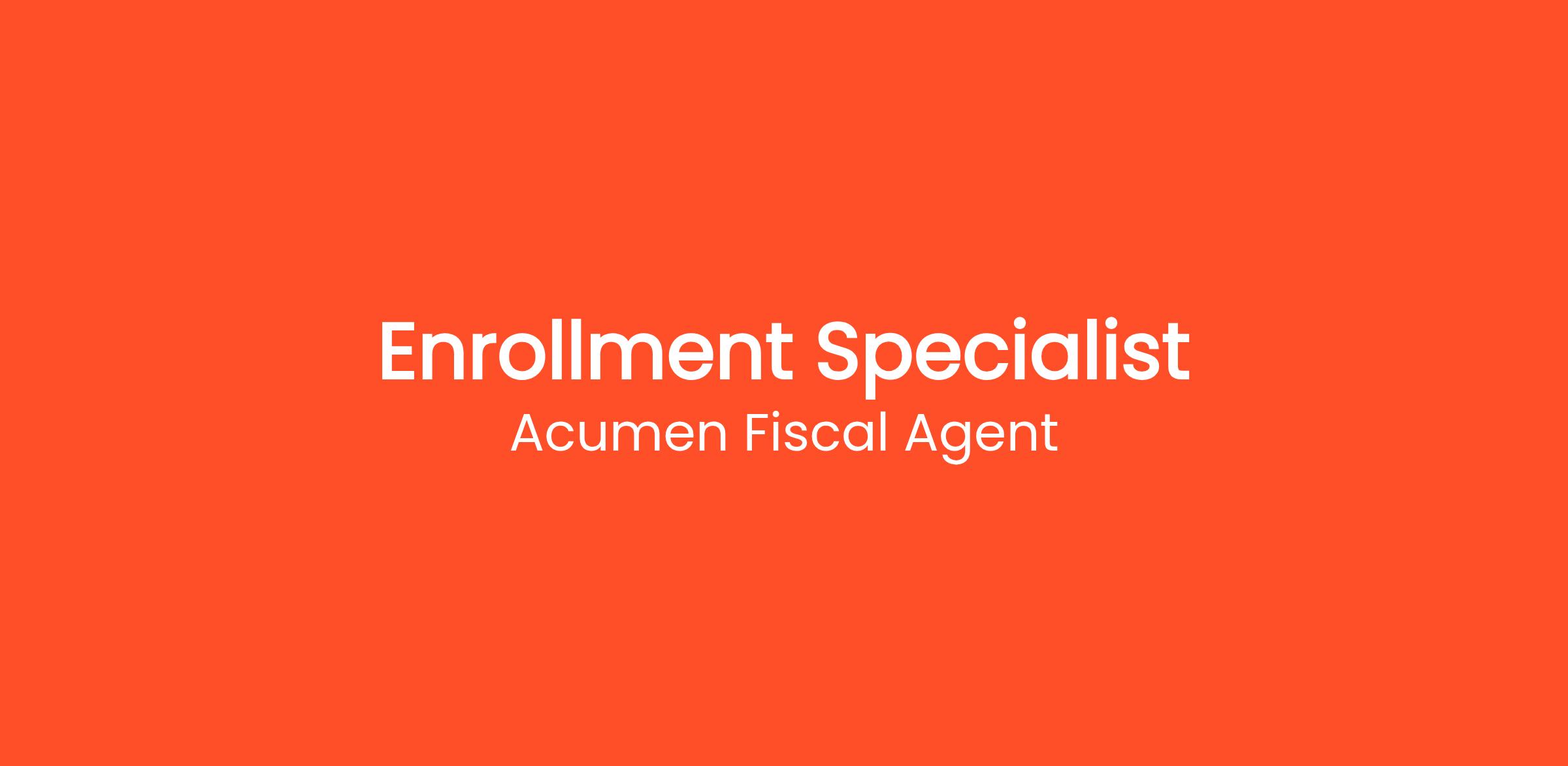 Acumen Fiscal Agent is seeking an Enrollment Specialist to join our dedicated team. In this role, you will be responsible for guiding clients through the enrollment process for our services, ensuring they receive the support they need to navigate our financial products. Your primary goal will be to facilitate a seamless enrollment experience while providing education about our services and answering any questions that clients may have. The ideal candidate will possess excellent communication skills, a strong attention to detail, and a passion for helping others. Join our team and contribute to empowering individuals in their journey towards greater independence.