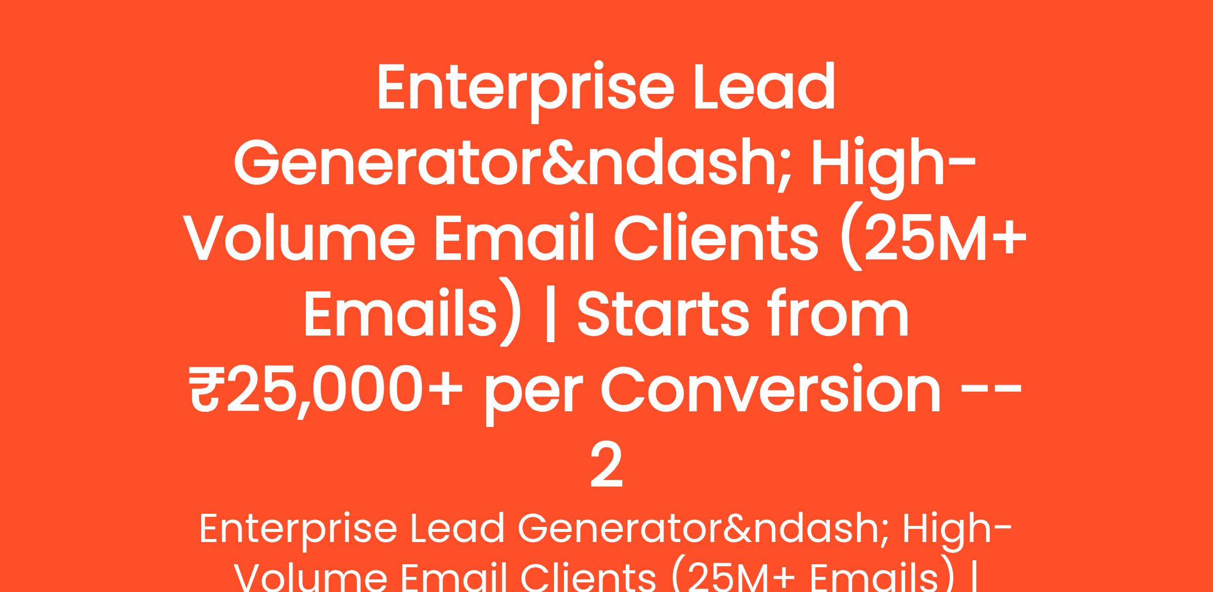 Project Overview We are an enterprise bulk email service provider with a fully managed solution, powered by a smart system that actively controls email delivery, makes real-time decisions, and automatically adapts to delivery challenges at scale... (Budget: ₹1500 - ₹12500 INR, Jobs: B2B Marketing, Business Development, Email Marketing, Enterprise Sales, Lead Generation, Market Research, SaaS Sales, Sales, Social Media Marketing)