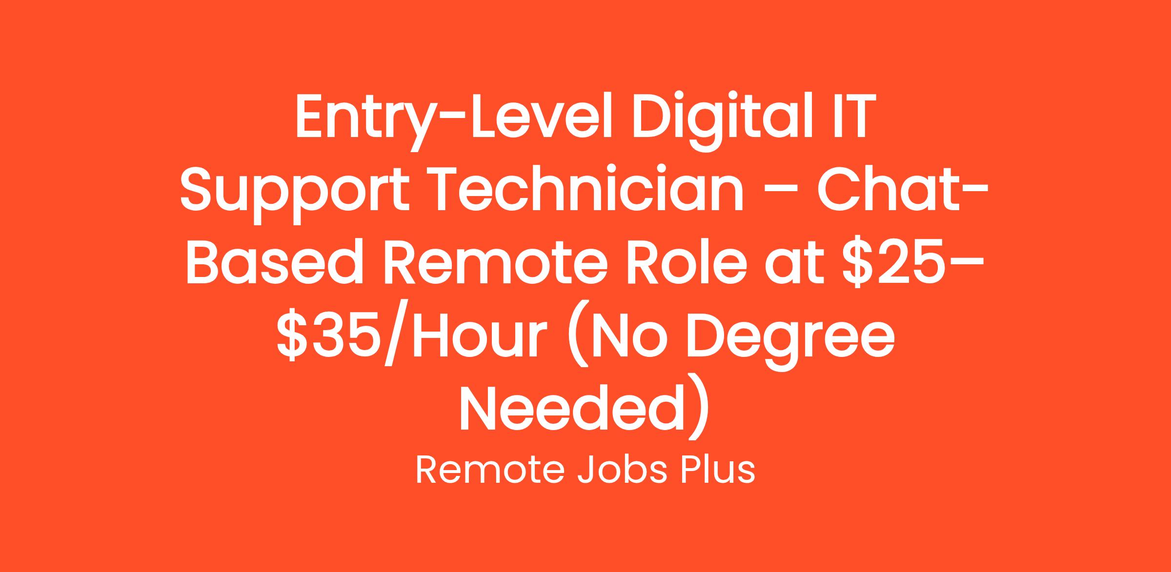 Entry-Level Digital IT Support Technician – Chat-Based Remote Role at $25–$35/Hour (No Degree Needed)