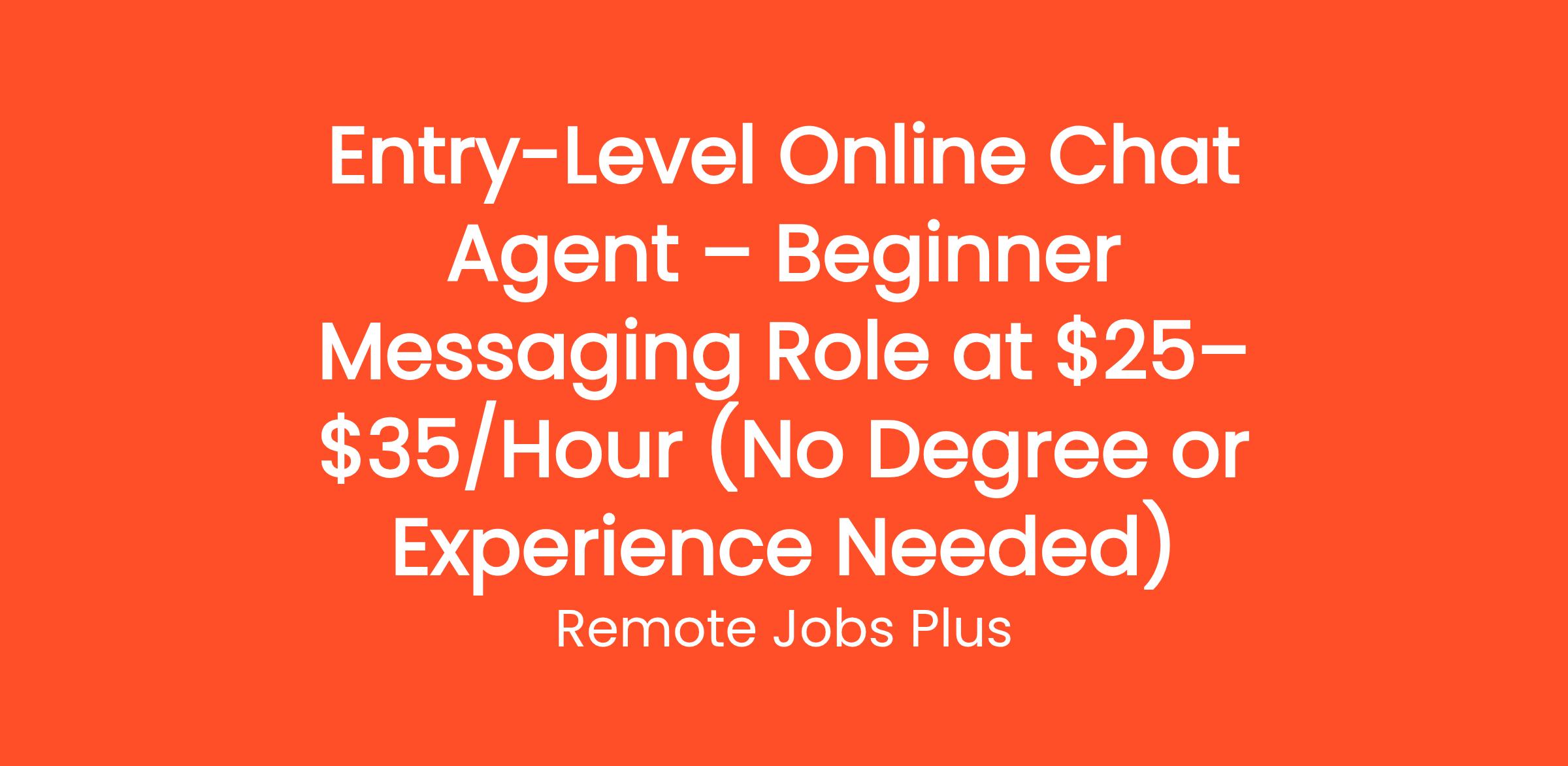 Entry-Level Online Chat Agent – Beginner Messaging Role at $25–$35/Hour (No Degree or Experience Needed)