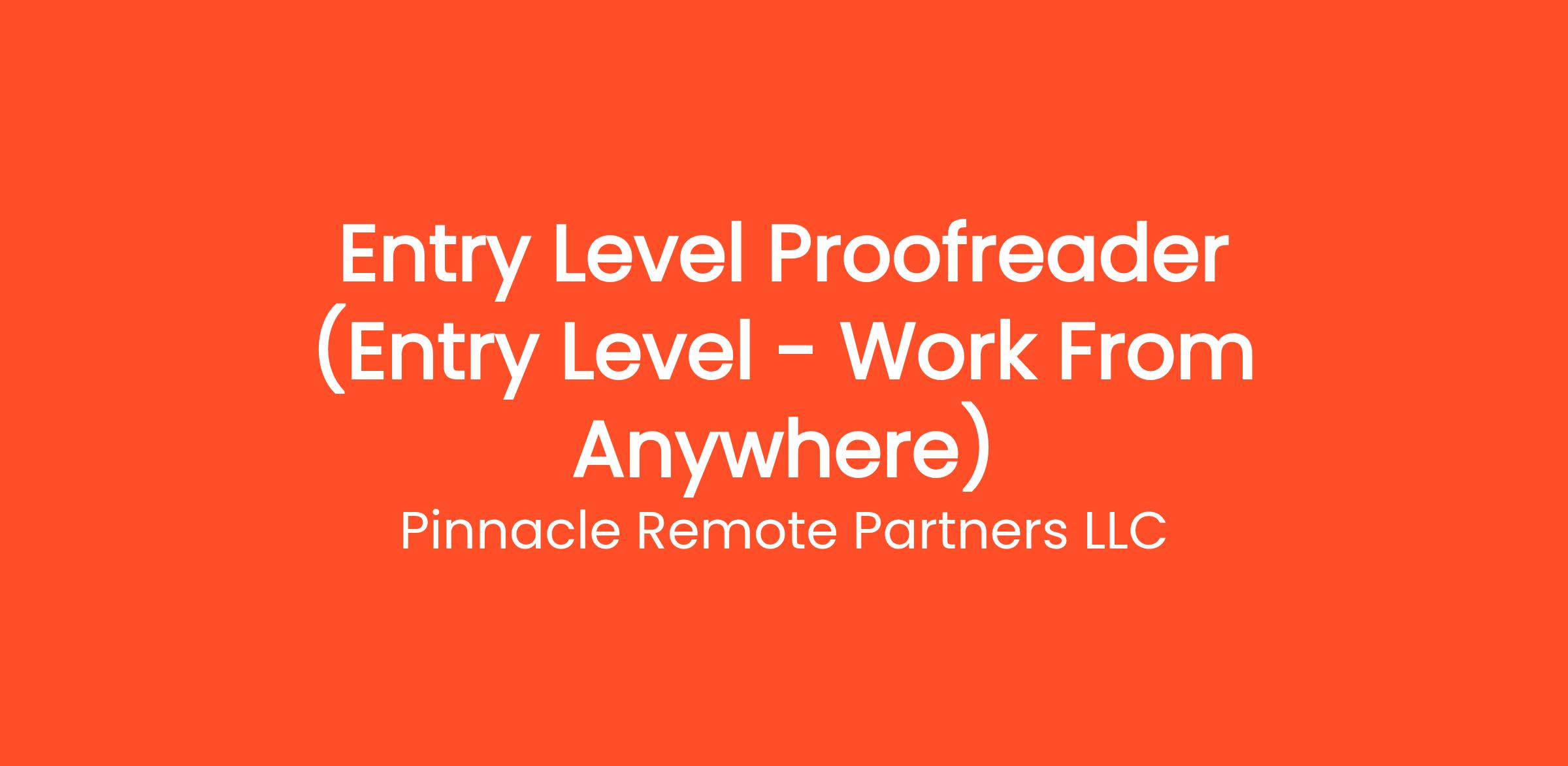 Are you highly organized and looking for the perfect entry-level opportunity? Pinnacle Remote Partners LLC is currently seeking a Entry Level Proofreader (Entry Level - Work From Anywhere) to join our rapidly growing remote team. If you've been searching for remote jobs no degree or remote jobs hiring, this is the exact role you've been looking for. No degree required and no prior experience is necessary—we provide comprehensive training to all new hires! You will be responsible for critical daily operations, managing secure platforms, and contributing to our vibrant digital culture.