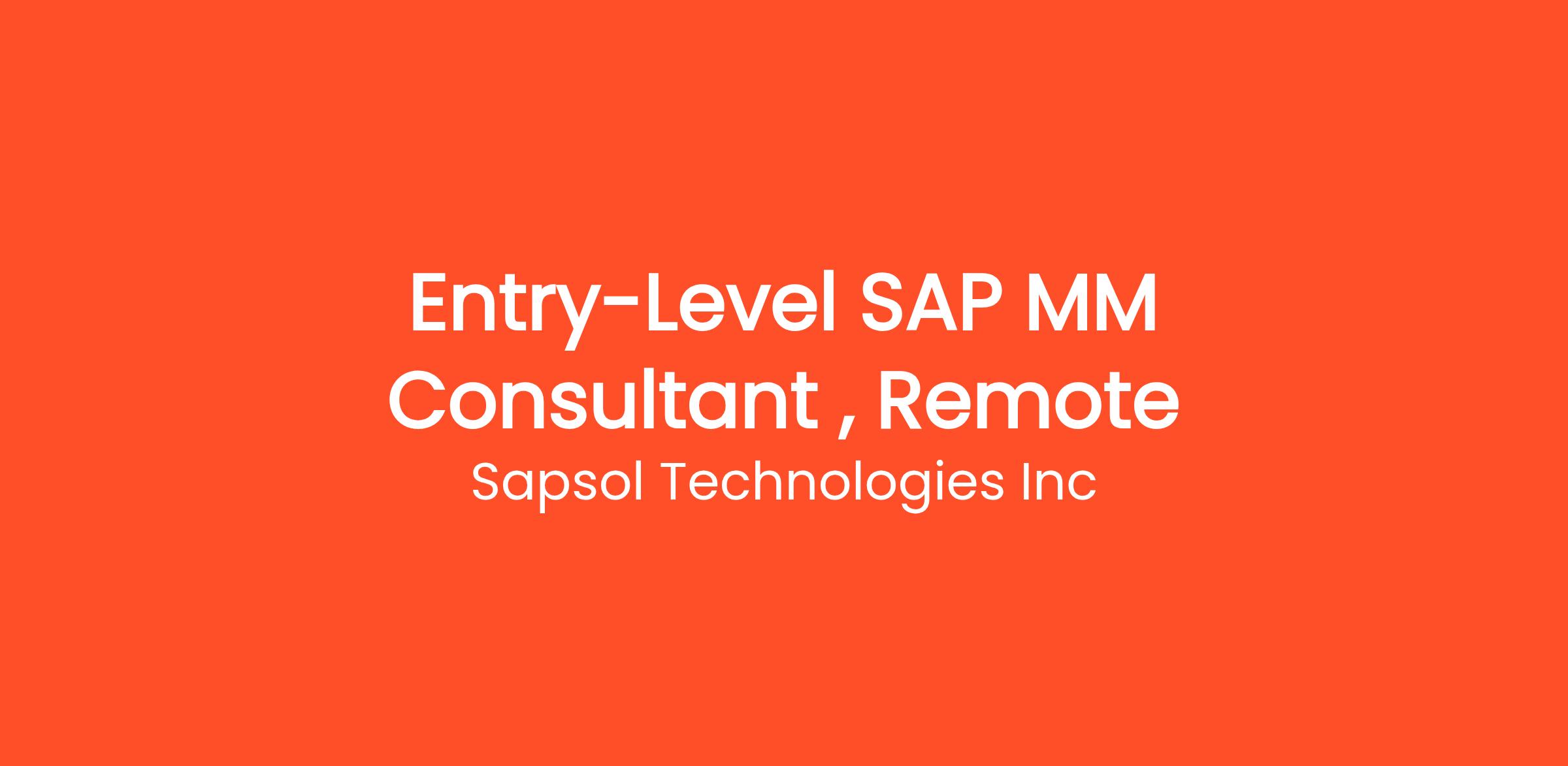 SAPSOL Technologies Inc. is actively seeking SAP Consultants who are passionate about SAP and eager to start their careers as SAP MM Consultants. If you are a recent graduate or someone with little to no prior work experience and you have a passion for SAP and are eager to work in cutting-edge technology areas, this could be an excellent opportunity to kick start your career.