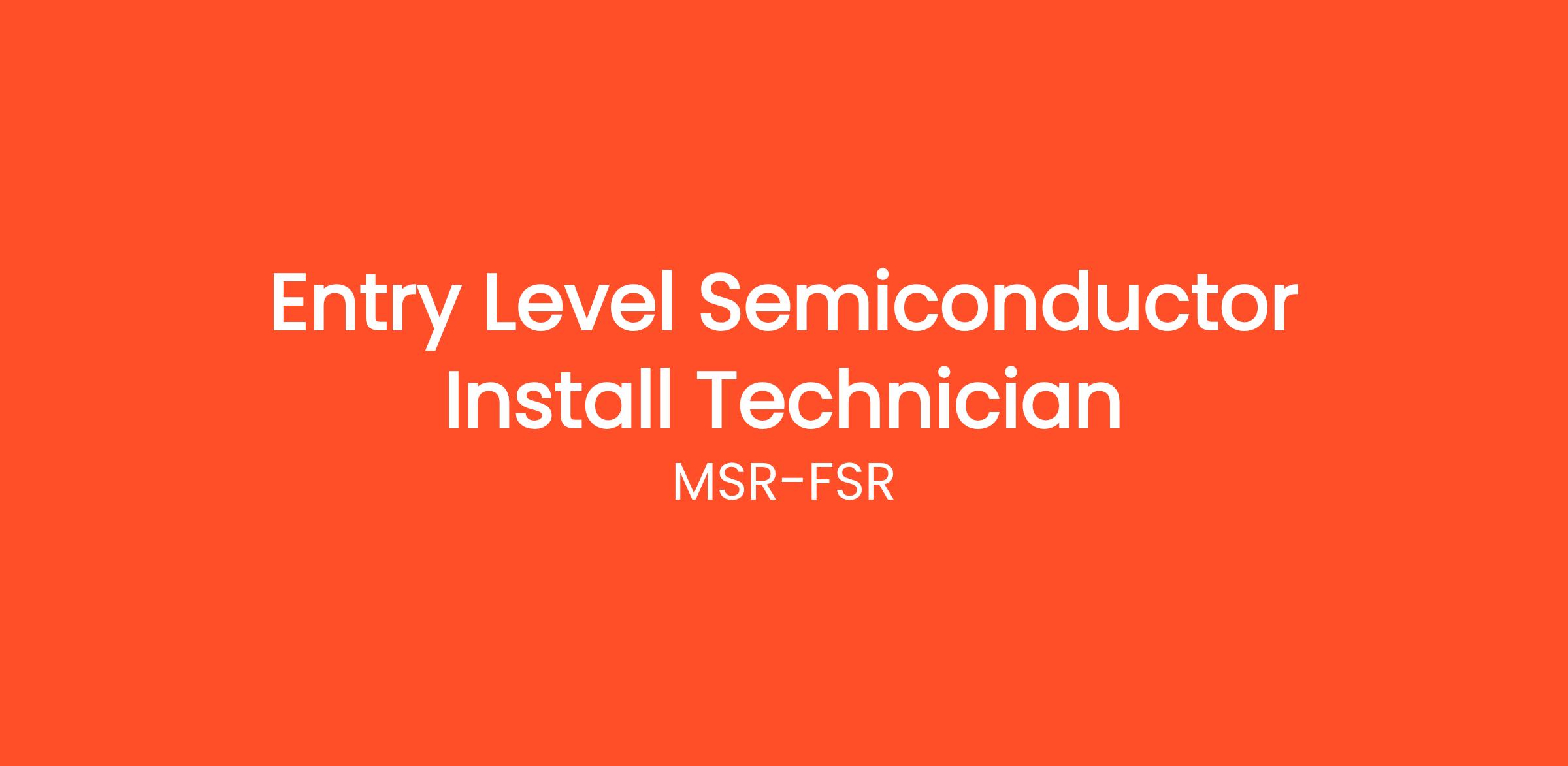 JOB TITLE: Entry Level Semiconductor Equipment Install Technician
