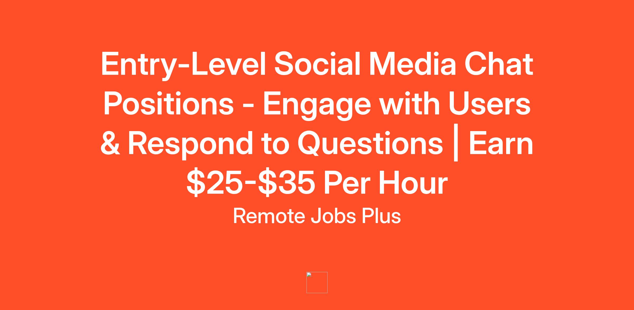 Entry-Level Social Media Chat Positions - Engage with Users & Respond to Questions | Earn $25-$35 Per Hour
