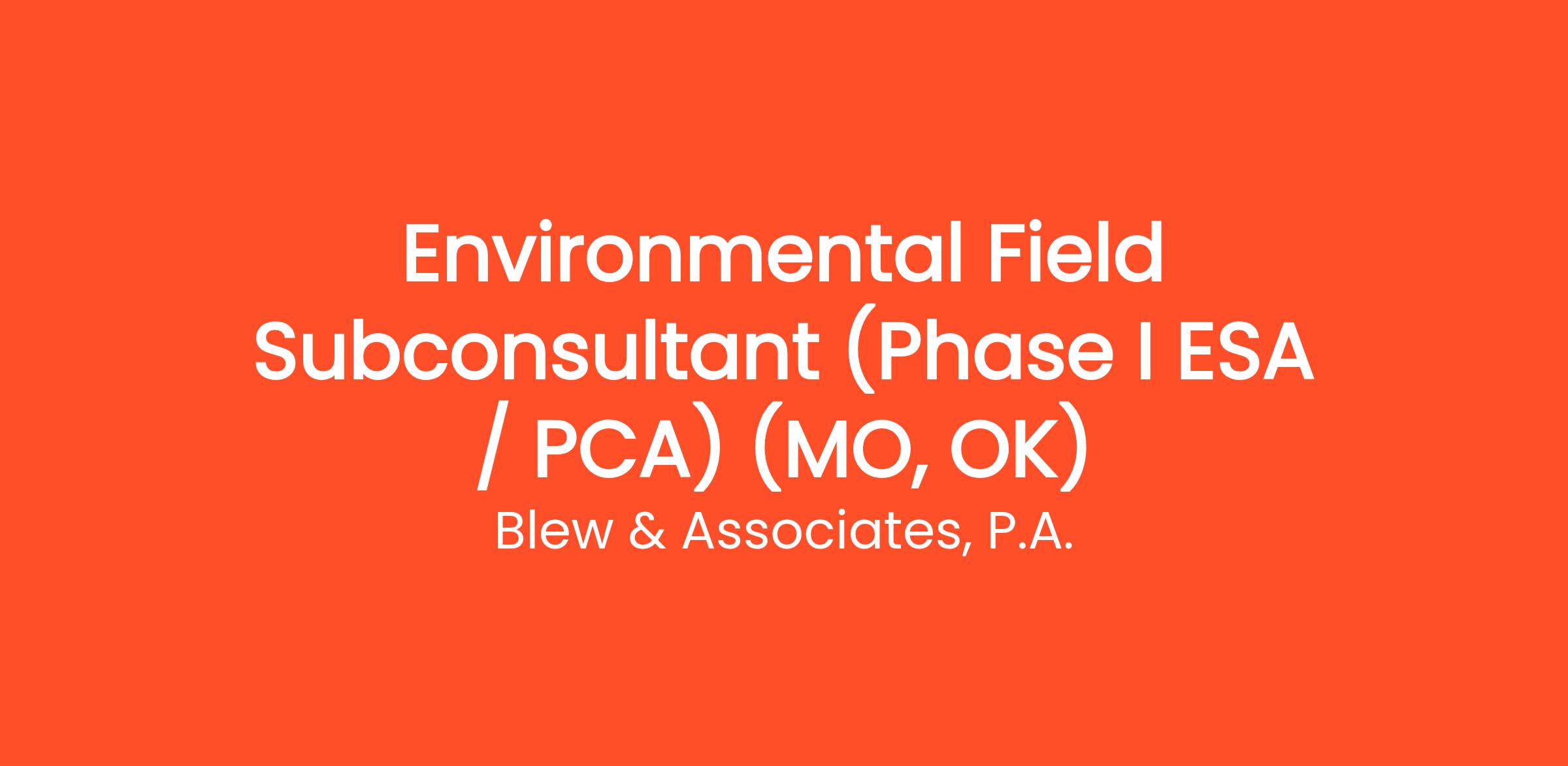 Environmental Field Subconsultant (Phase I ESA / PCA) (MO, OK)