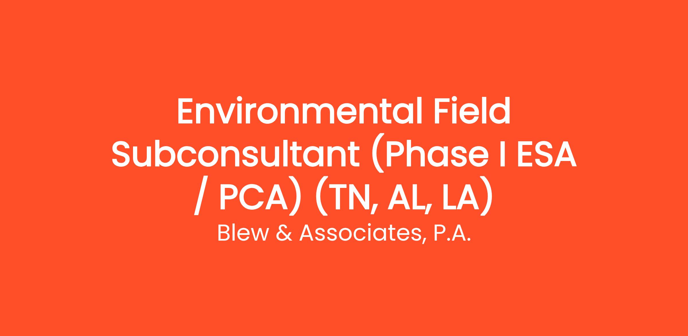 Environmental Field Subconsultant (Phase I ESA / PCA) (TN, AL, LA)