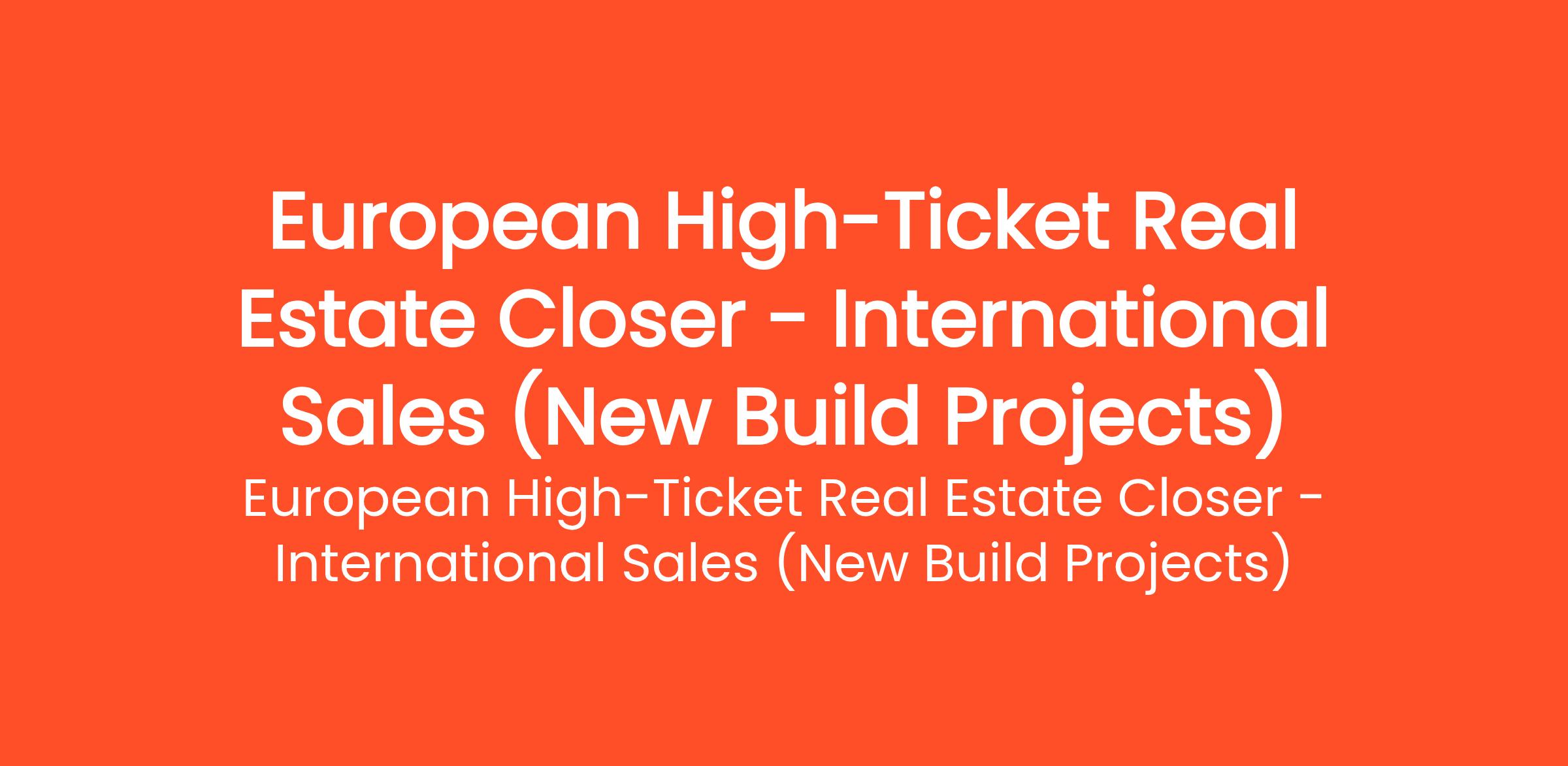 The Opportunity: We represent a premium portfolio of brand-new residential projects across Spain’s most sought-after coastal and urban hubs. These are high-ticket, off-plan apartments (€200,000 - €800,000)... (Budget: €5000 - €10000 EUR, Jobs: Closer, CRM, Customer Service, Lead Generation, Real Estate, Sales, Sales Management, Video Conferencing)