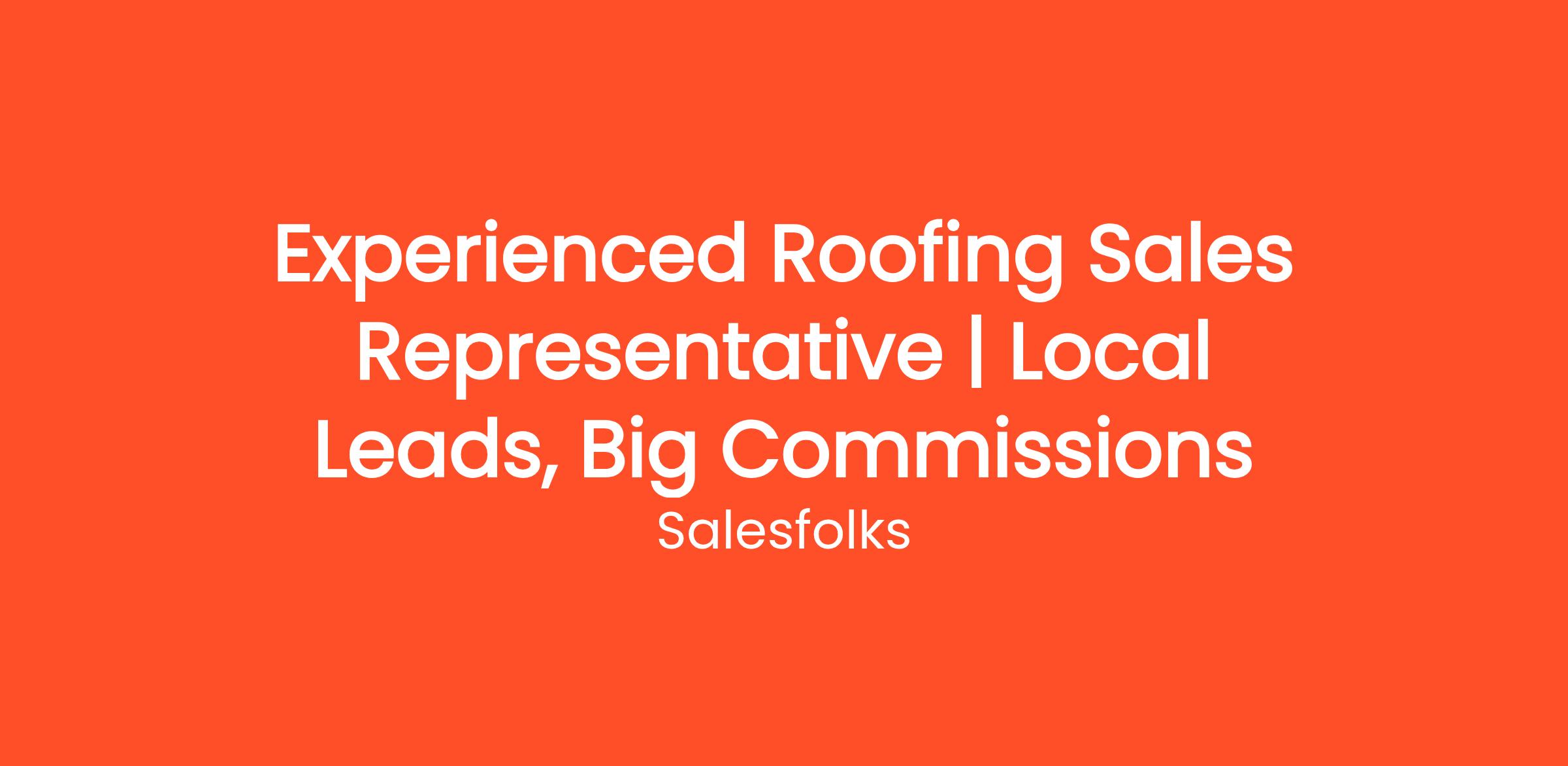 This is NOT a job for the average salesperson. This is a career-defining opportunity for roofing sales closers who are ready to step up their income earning potential.