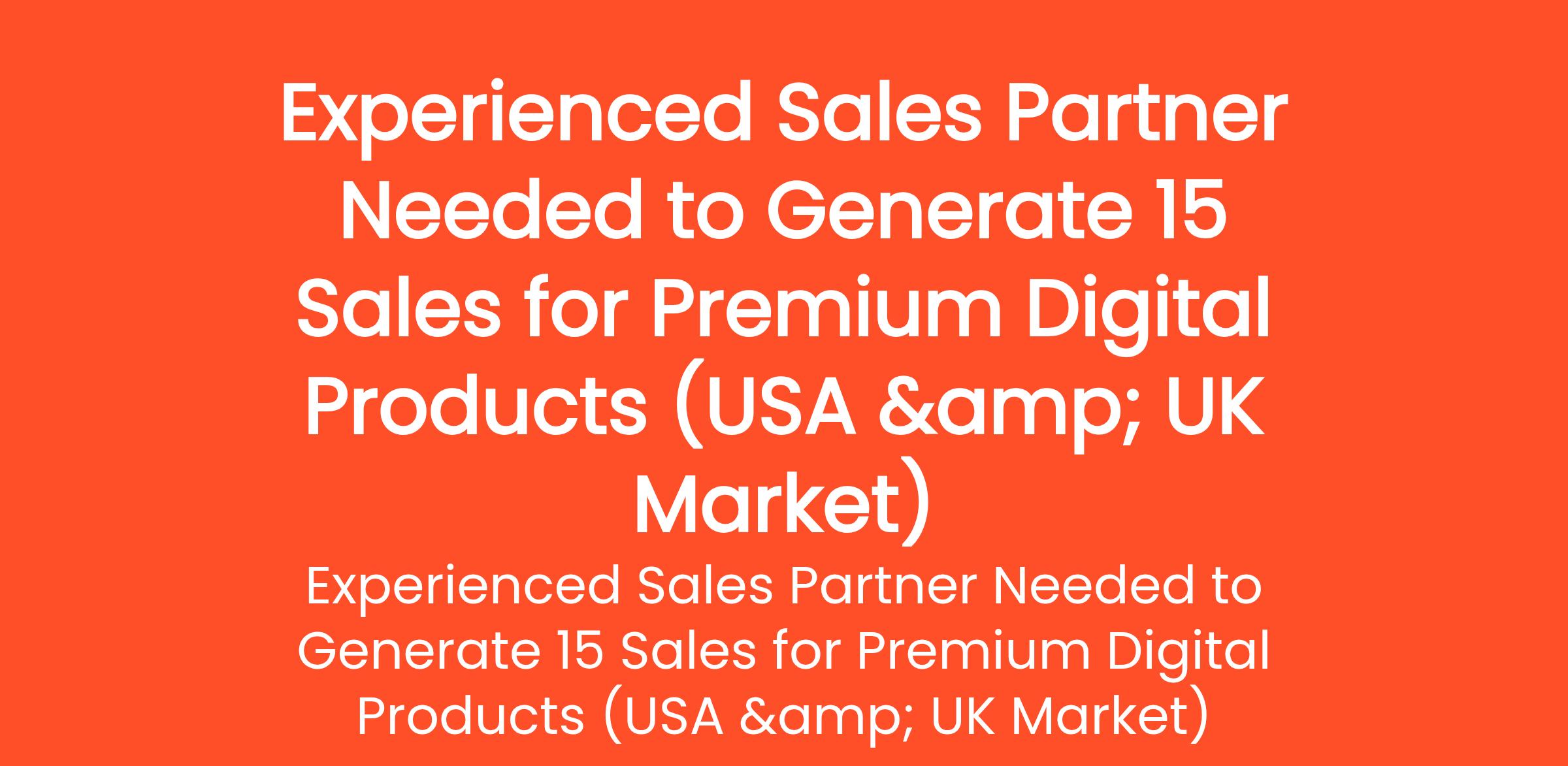 We are hiring an experienced digital sales and growth professional to generate 15 confirmed sales for our high-demand digital business products targeting USA & UK entrepreneurs. Our product line includes:... (Budget: $250 - $750 USD, Jobs: Affiliate Marketing, Conversion Rate Optimization, Digital Marketing, Influencer Marketing, Instagram Marketing, Lead Generation, Marketing, Marketing Strategy, Sales, Social Media Marketing)