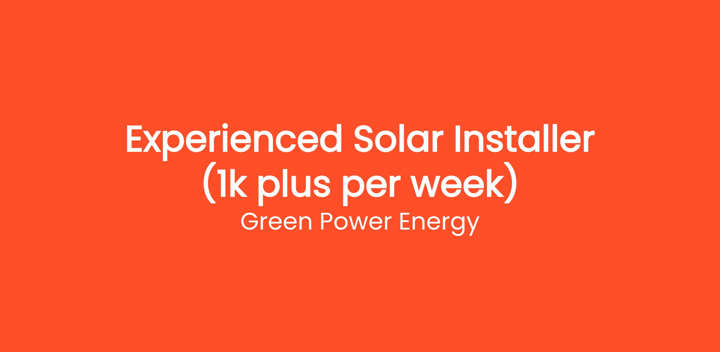 Experienced Solar Installer (1k plus per week)