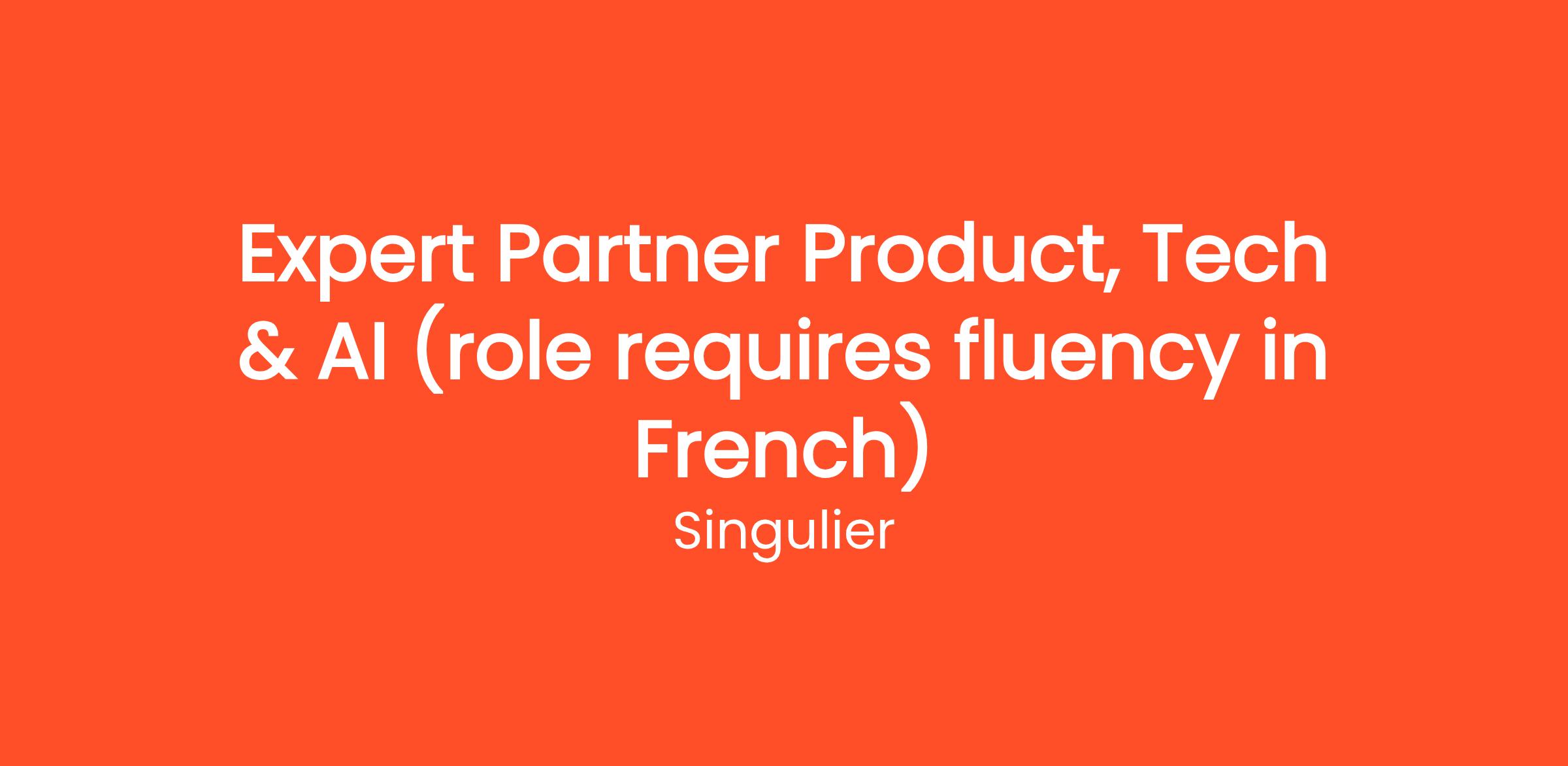 Singulier is seeking an Expert Partner to lead its Product, Tech & AI practice across Europe (role requires fluency in French).