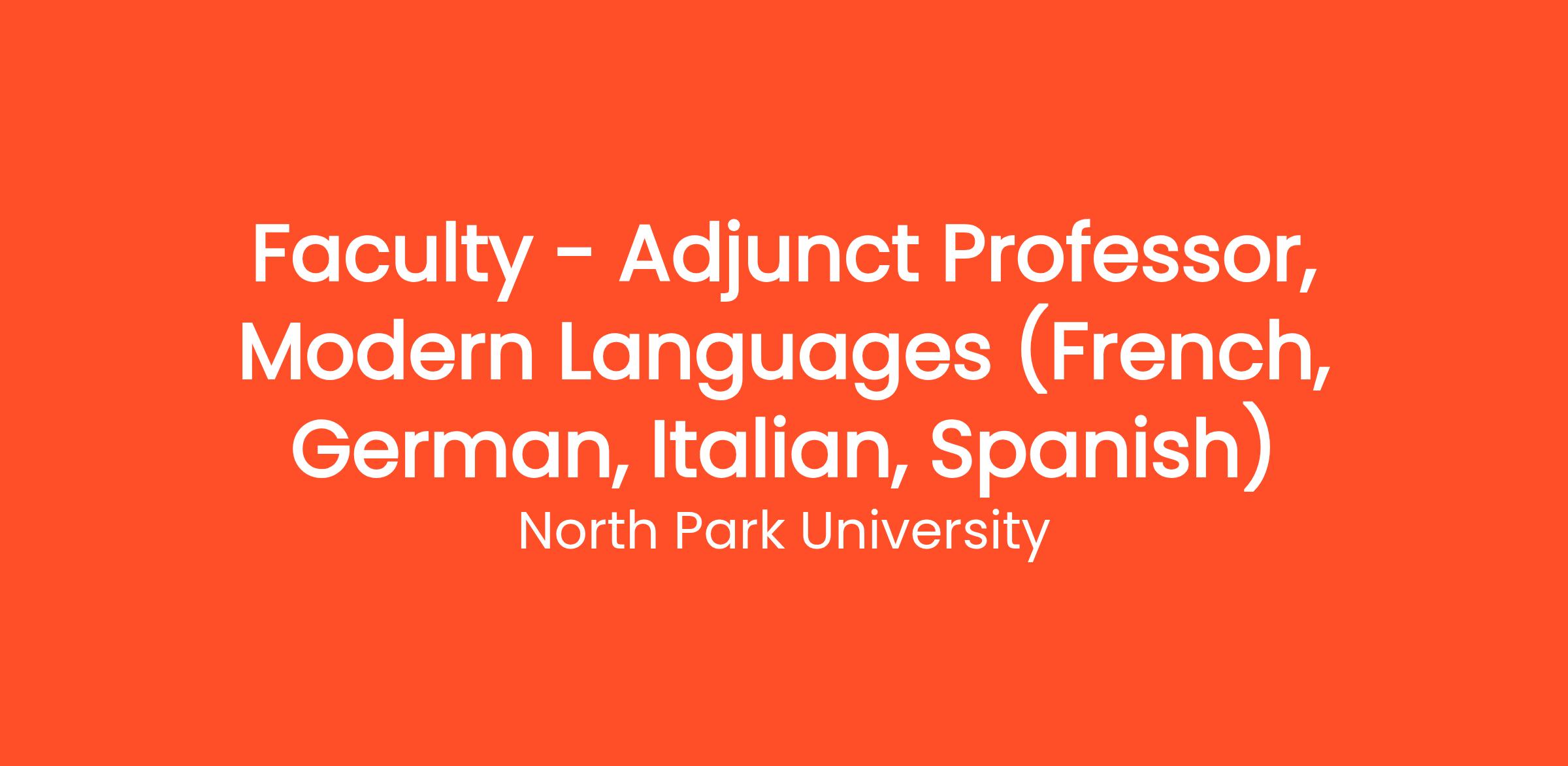 The Modern Languages Department of North Park University invites applications for a pool of interested adjunct instructors to teach introductory courses in French, German, Italian, and Spanish as sections become available.