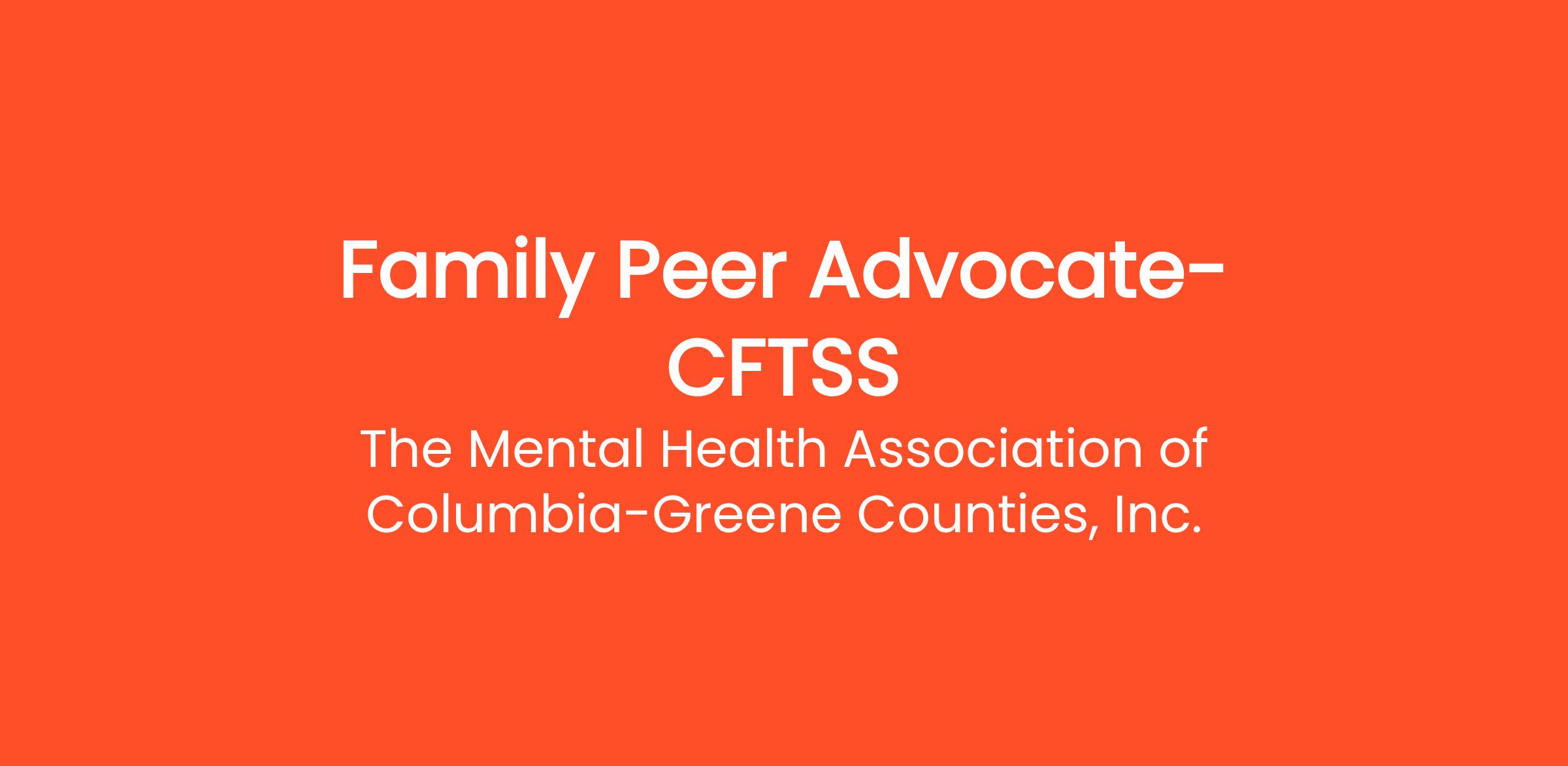 Are you a parent with a child that has a diagnosis? Are you looking for a rewarding career in Mental Health & Human Services? Apply today to join an amazing team, dedicated to advocating for the health & well-being of individuals, families, and communities. The Mental Health Association of Columbia-Greene Counties Inc. is looking to fill the position of Family Peer Advocate through Children and Family Treatment and Support Services (CFTSS).