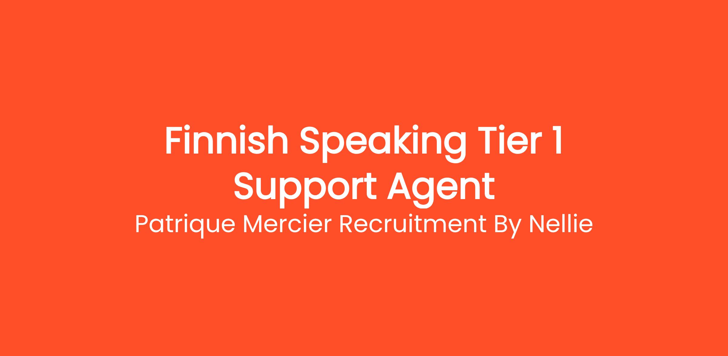 Patrique Mercier Recruitment FR is excited to announce an opening for a Finnish Speaking Tier 1 Support Agent. This role is perfect for individuals who are passionate about customer service and keen to support our Finnish-speaking clientele. As a Tier 1 Support Agent, you will be the first point of contact for clients, providing essential assistance and resolving inquiries effectively.