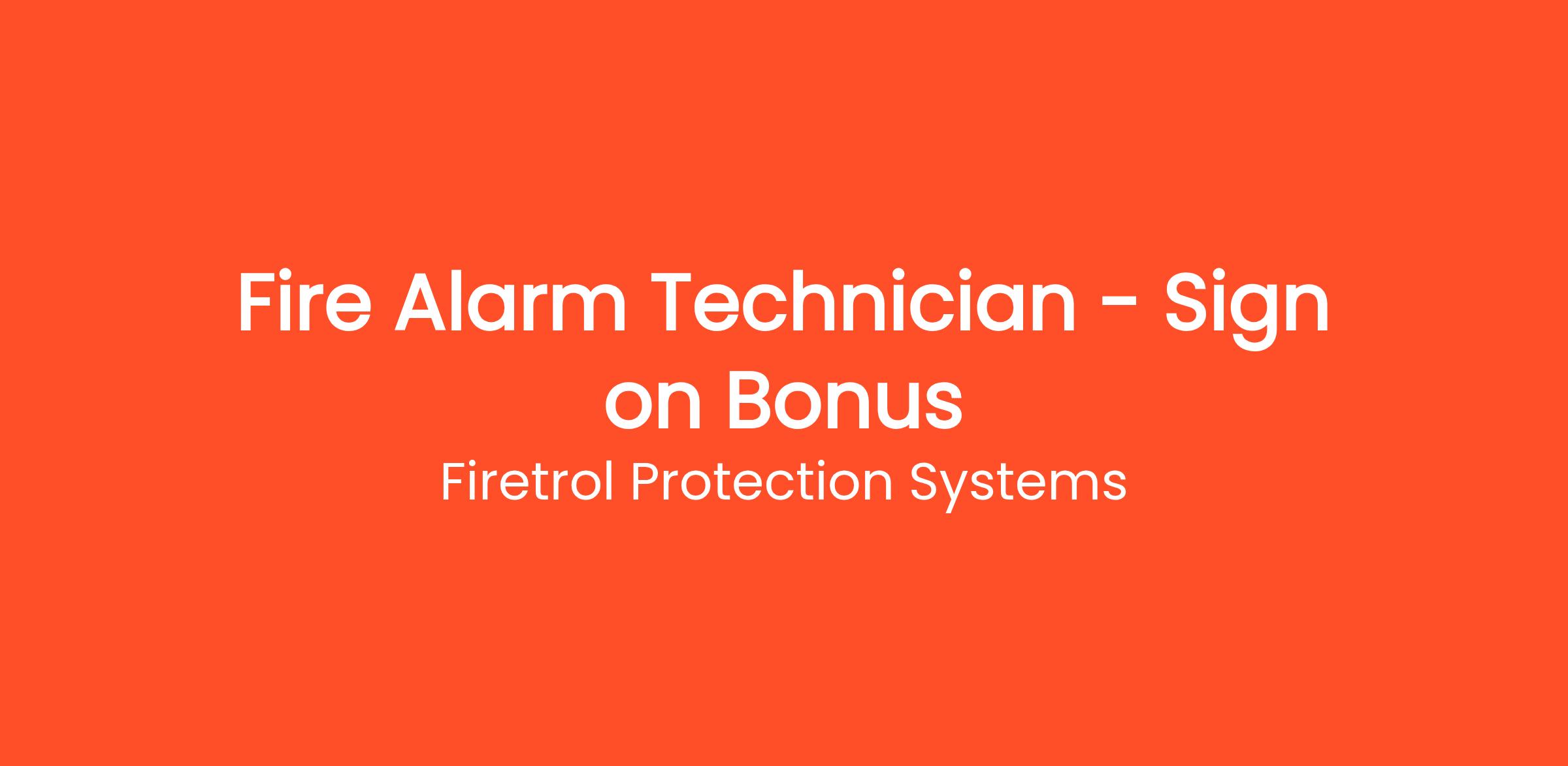 We offer a sign-on bonus to qualified candidates, as well as competitive wages, outstanding benefits, and opportunities for career growth. Firetrol provides health, dental, and vision insurance, life insurance, short and long-term disability coverage, generous paid time off, a 401(k) plan with a company match and immediate vesting, and sponsorship for training and education.