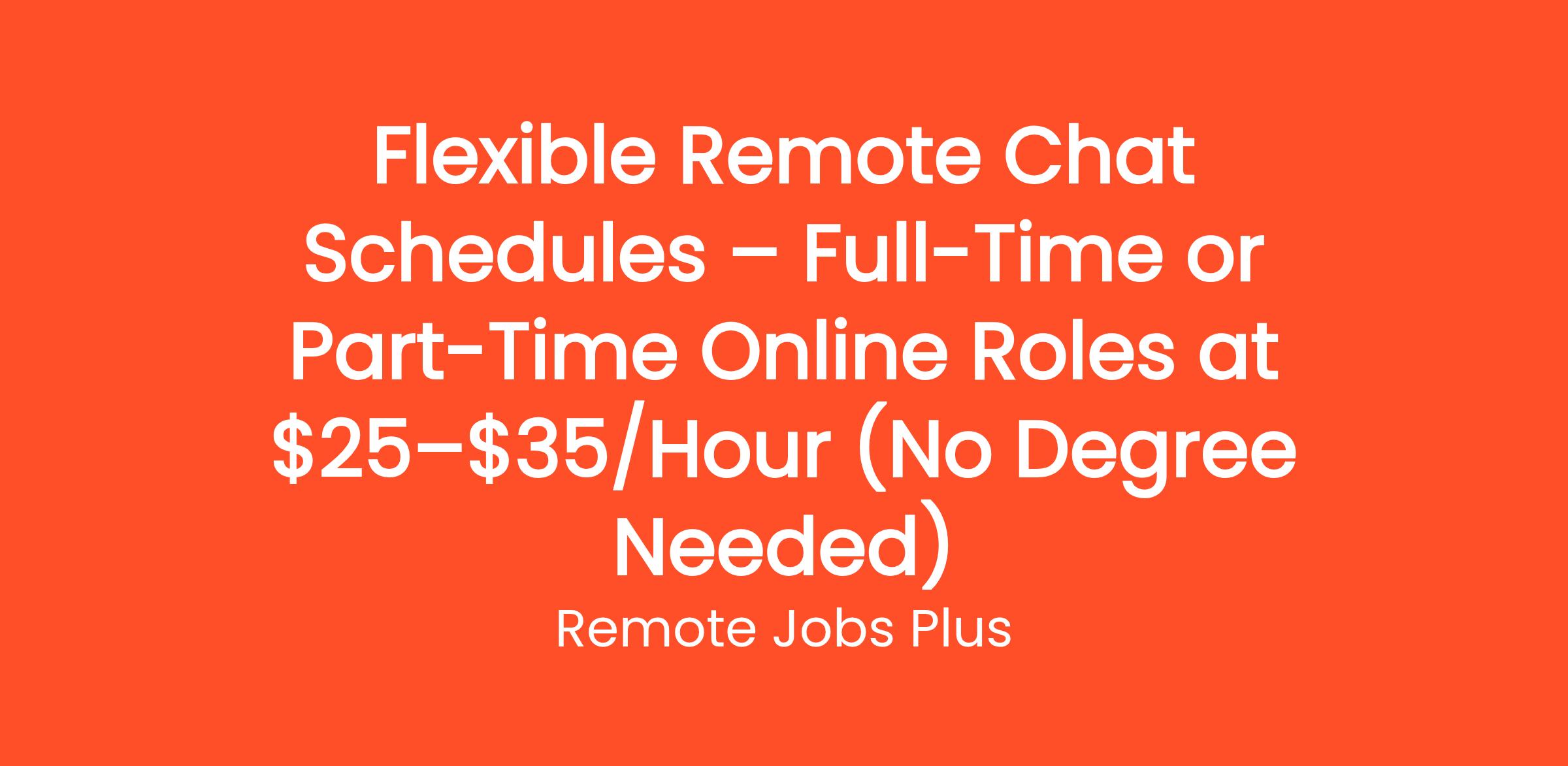 Flexible Remote Chat Schedules – Full-Time or Part-Time Online Roles at $25–$35/Hour (No Degree Needed)