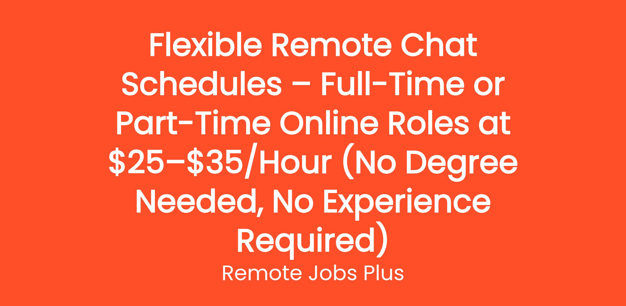 Flexible Remote Chat Schedules – Full-Time or Part-Time Online Roles at $25–$35/Hour (No Degree Needed, No Experience Required)