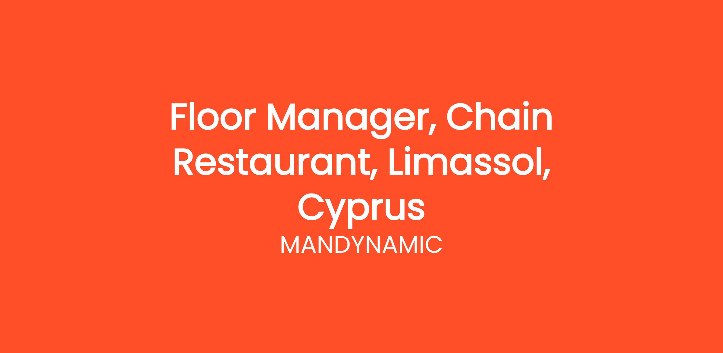 MANDYNAMIC is seeking Floor Managers on behalf of well known Chain Restaurants in Limassol, Cyprus. Candidates should have a positive attitude, responsibility and professionalism.