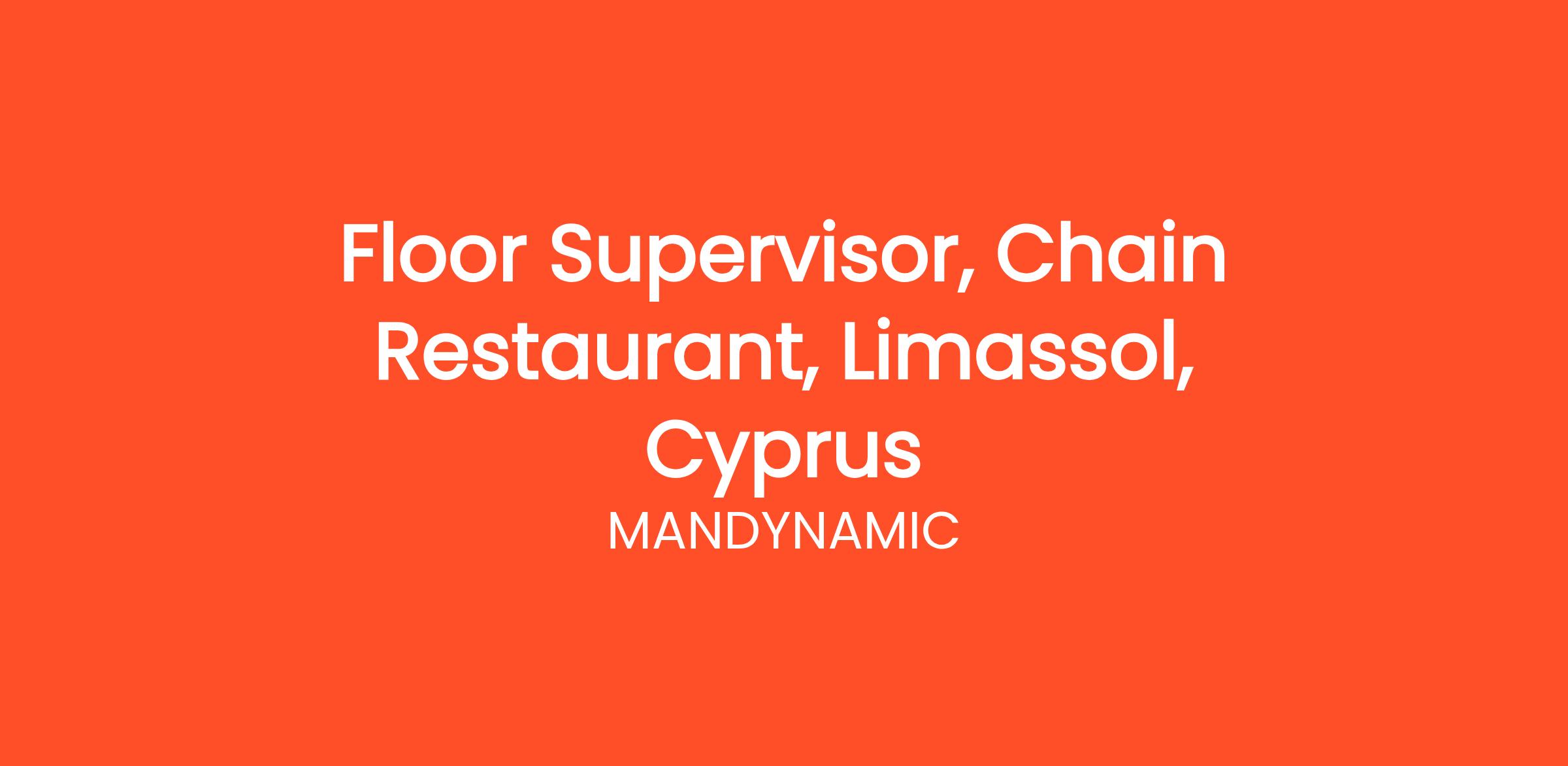 MANDYNAMIC is seeking Floor Managers on behalf of well known Chain Restaurants in Limassol, Cyprus. Candidates should have a positive attitude, responsibility and professionalism.