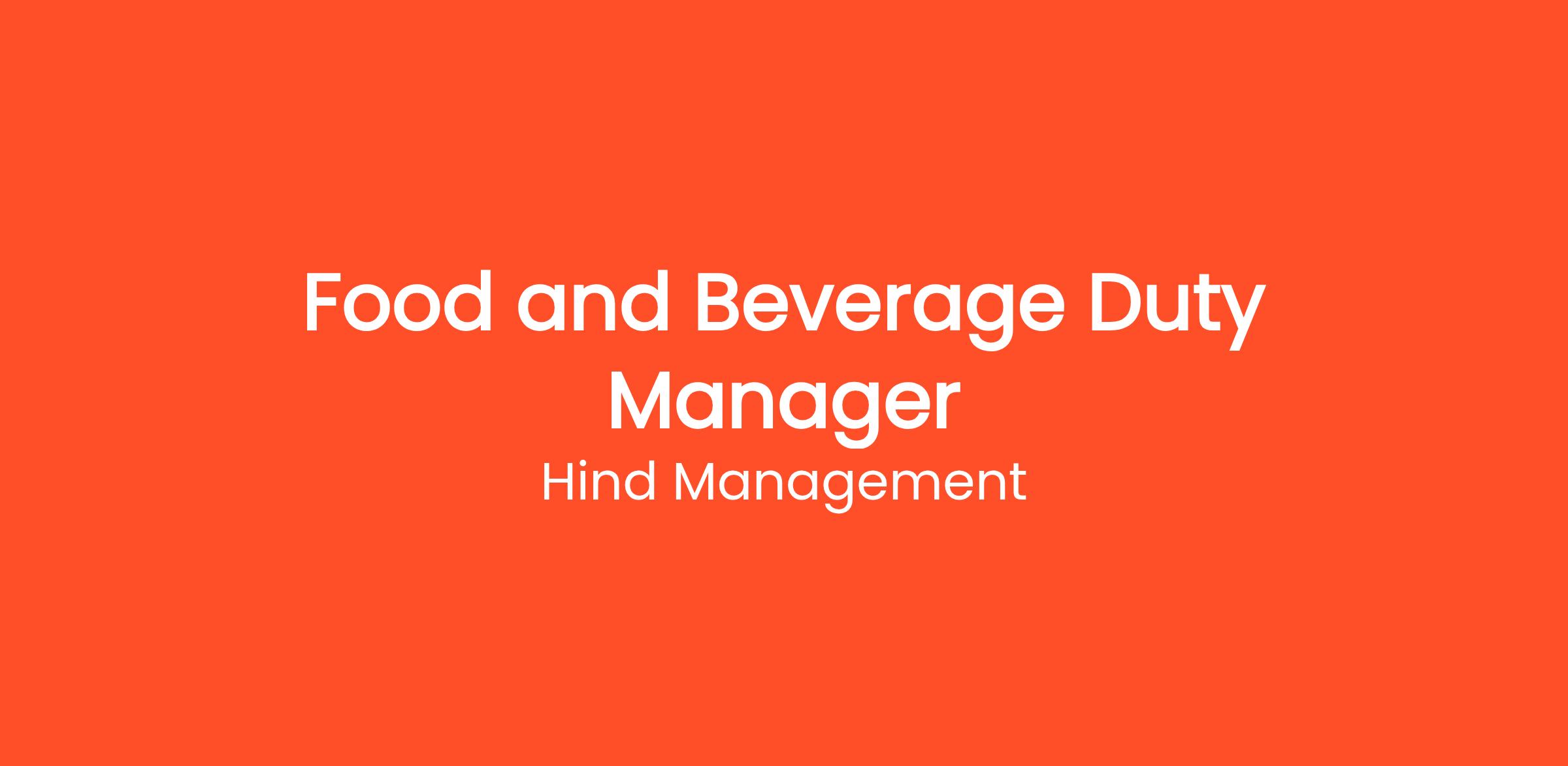 The Food & Beverage Duty Manager is responsible for the management and day to day operations of the food and beverage team while on shift in the hotel. This covers restaurant, bar, room service, and function operations whilst maintaining standards and enhancing the guest experience.
