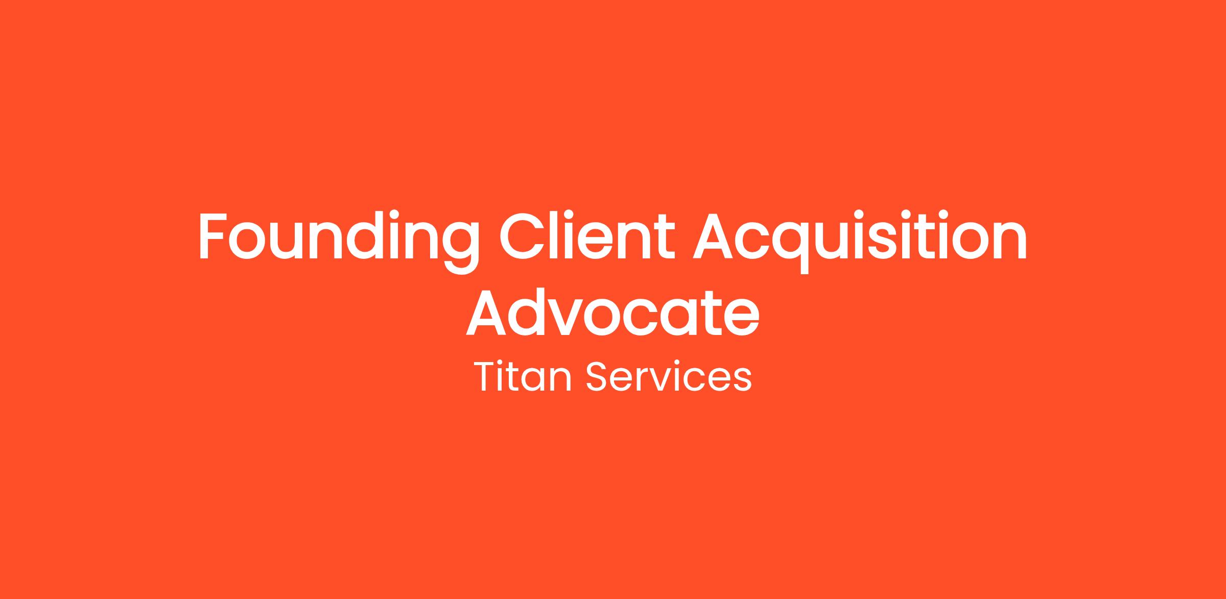 We are currently seeking a highly motivated and experienced Founding Client Acquisition Advocate to anchor our Client Acquisition team. This role represents a unique opportunity to shape the foundational procedures of a rapidly growing segment within Titan Services. As the Founding Client Acquisition Advocate, you will be tasked with untangling complex operational challenges, setting clear project trajectories, and ensuring that cross-functional teams remain perfectly aligned. Your daily focus will revolve around data-driven decision-making, where you will analyze performance metrics to continually refine our operational playbook. We are looking for an individual who possesses a rare blend of creative problem-solving skills and rigorous analytical capabilities. You will frequently serve as a subject matter expert, guiding junior team members and advising senior leadership on best practices within your domain. This position demands a high degree of autonomy; we expect you to own your projects entirely, managing risks proactively and delivering solutions that exceed initial expectations.