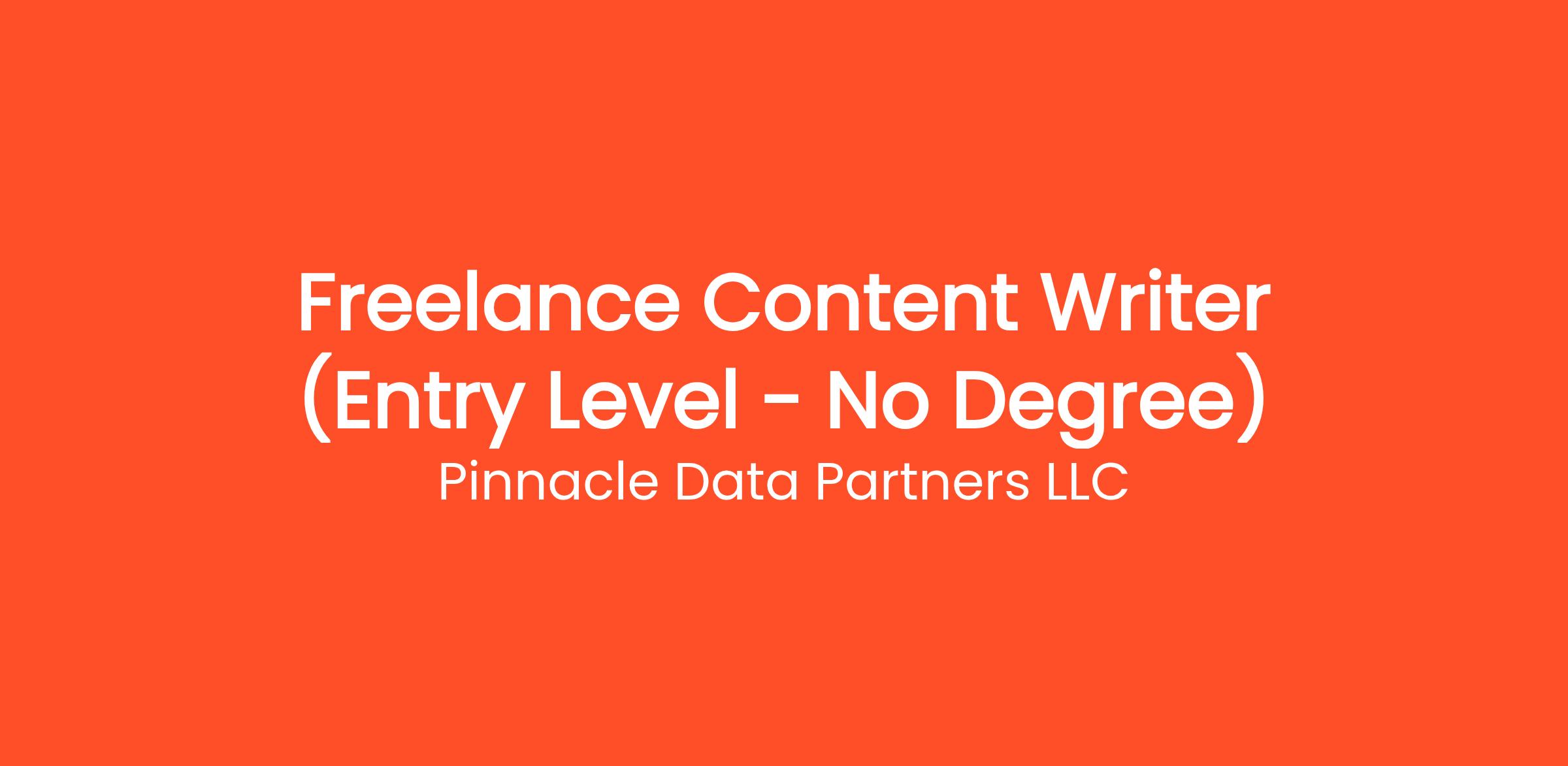 Are you highly organized and looking for the perfect entry-level opportunity? Pinnacle Data Partners LLC is currently seeking a Freelance Content Writer (Entry Level - No Degree) to join our rapidly growing remote team. If you've been searching for remote jobs no degree or virtual assistant jobs, this is the exact role you've been looking for. No degree required and no prior experience is necessary—we provide comprehensive training to all new hires! You will be responsible for critical daily operations, managing secure platforms, and contributing to our vibrant digital culture.