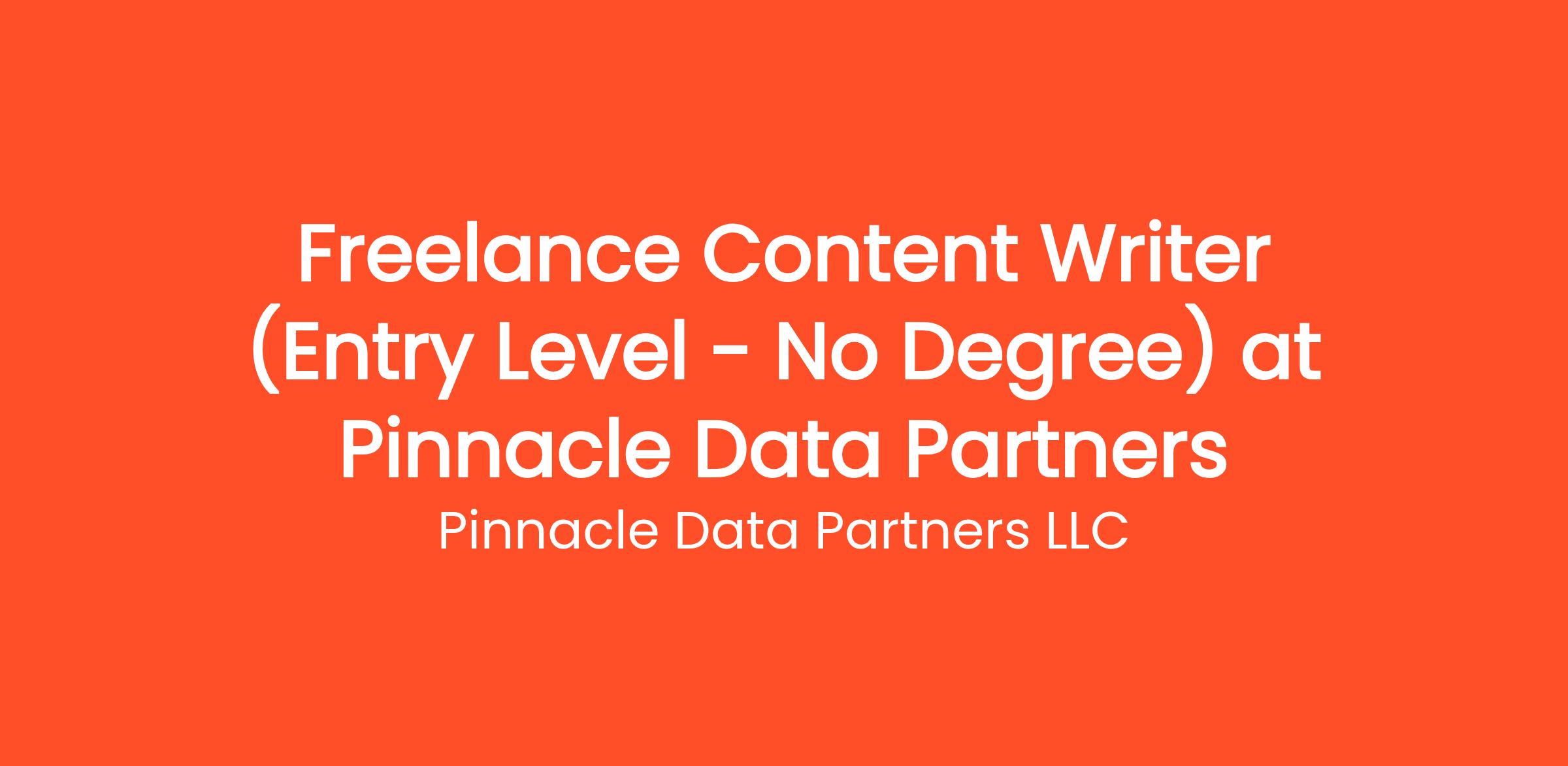 Are you highly organized and looking for the perfect entry-level opportunity? Pinnacle Data Partners LLC is currently seeking a Freelance Content Writer (Entry Level - No Degree) to join our rapidly growing remote team. If you've been searching for remote jobs no degree or virtual assistant jobs, this is the exact role you've been looking for. No degree required and no prior experience is necessary—we provide comprehensive training to all new hires! You will be responsible for critical daily operations, managing secure platforms, and contributing to our vibrant digital culture.