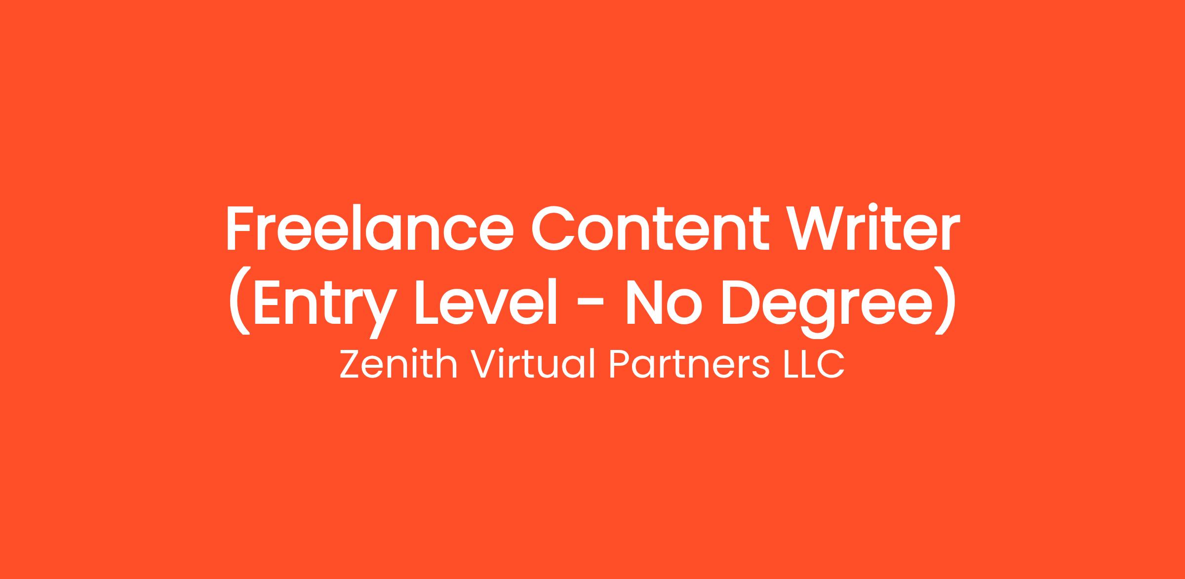 Are you highly organized and looking for the perfect entry-level opportunity? Zenith Virtual Partners LLC is currently seeking a Freelance Content Writer (Entry Level - No Degree) to join our rapidly growing remote team. If you've been searching for remote jobs no degree or overnight remote jobs, this is the exact role you've been looking for. No degree required and no prior experience is necessary—we provide comprehensive training to all new hires! You will be responsible for critical daily operations, managing secure platforms, and contributing to our vibrant digital culture.