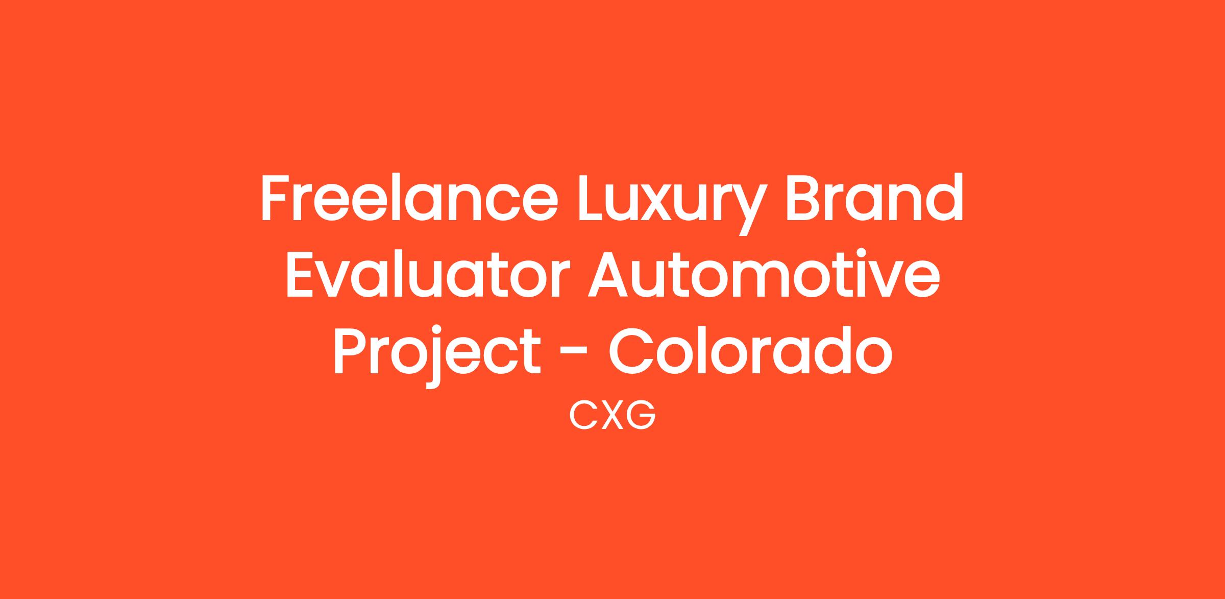 Freelance Luxury Brand Evaluator Automotive Project - Colorado