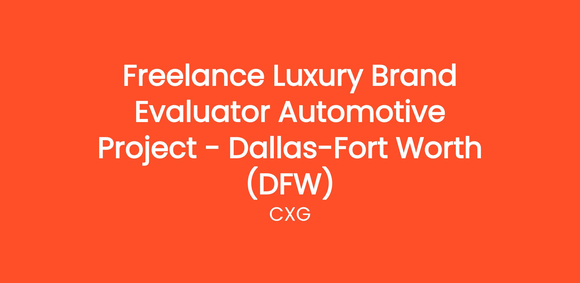 Freelance Luxury Brand Evaluator Automotive Project - Dallas-Fort Worth (DFW)