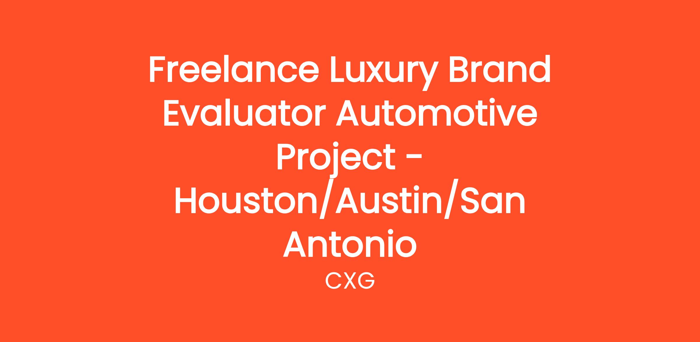 Freelance Luxury Brand Evaluator Automotive Project - Houston/Austin/San Antonio