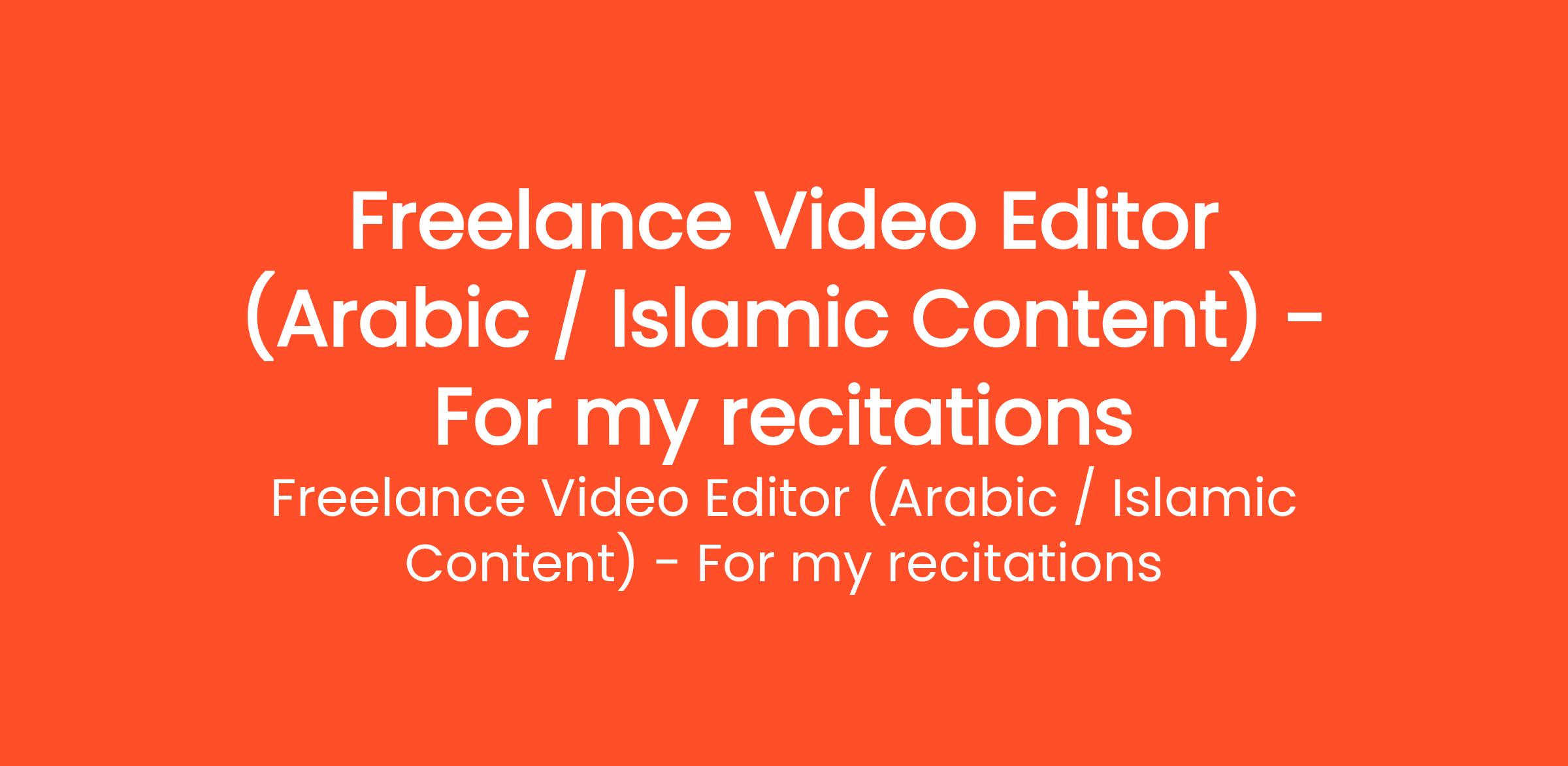 Project Overview: Looking for an Arabic-speaking video editor to create 5 simple, peaceful, and faceless Quran recitation videos using my provided voice recordings. What You'll Do Visuals: Source and use high-quality, serene stock footage... (Budget: ₹600 - ₹1500 INR, Jobs: Adobe Premiere Pro, Audio Services, Final Cut Pro, Sound Design, Video Editing, Video Post-editing, Video Production, Video Services)