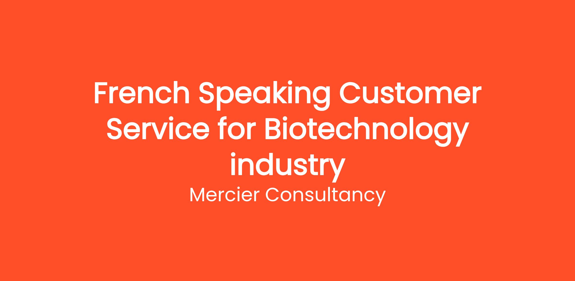 Mercier Consultancy is seeking an enthusiastic French Speaking Customer Service Representative to join our team in the Biotechnology industry. In this crucial role, you will provide exceptional support to our French-speaking clients, assisting them with inquiries related to our biotechnology products and services.